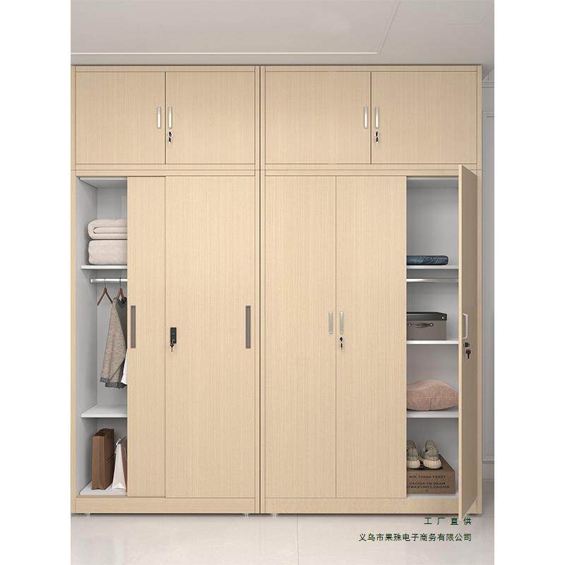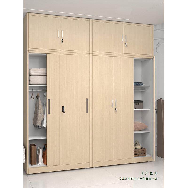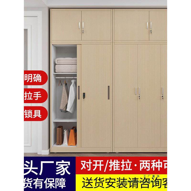 门钢制木纹衣柜阳EWC台储物推拉带锁皮衣铁柜卧柜室收纳衣橱铁皮
