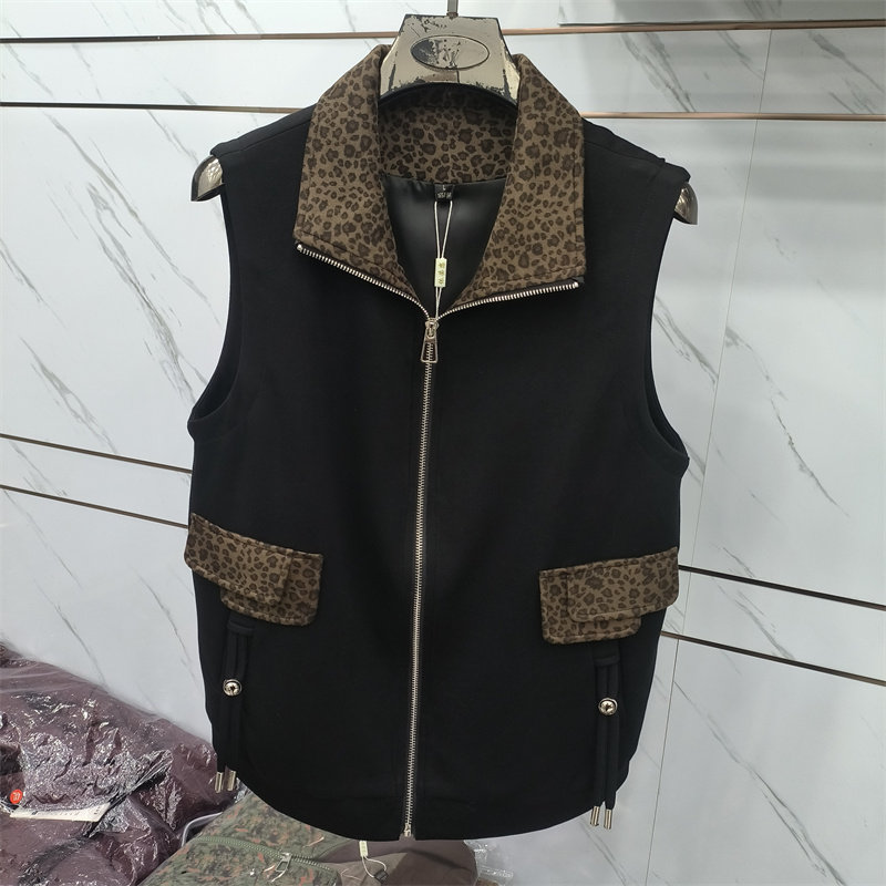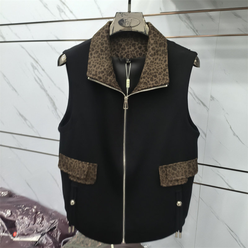 外套时尚 女豹纹拼接拉链马甲无袖 百搭厂家直销 新款 2026春季