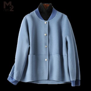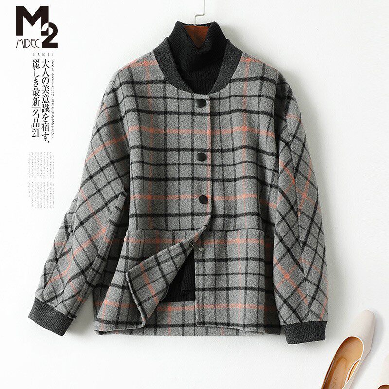 加厚羊毛短款 宽松大码 双面呢格子毛呢外套女 2021年秋冬新款 M2女装