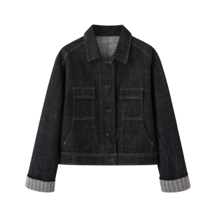 牛仔夹克女宽松小个子翻领短款 工装 外套 新款 画风drawwind2026春季