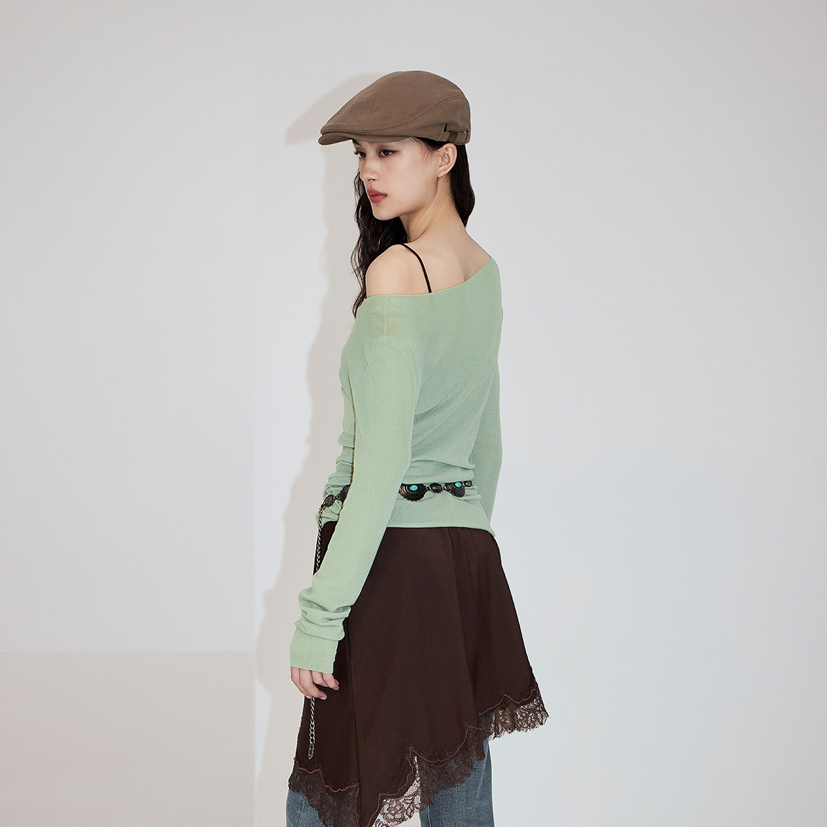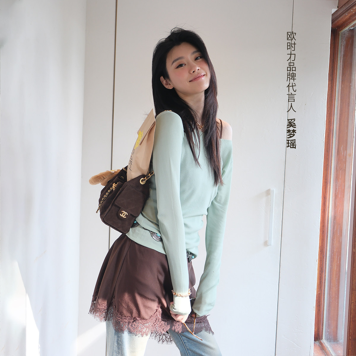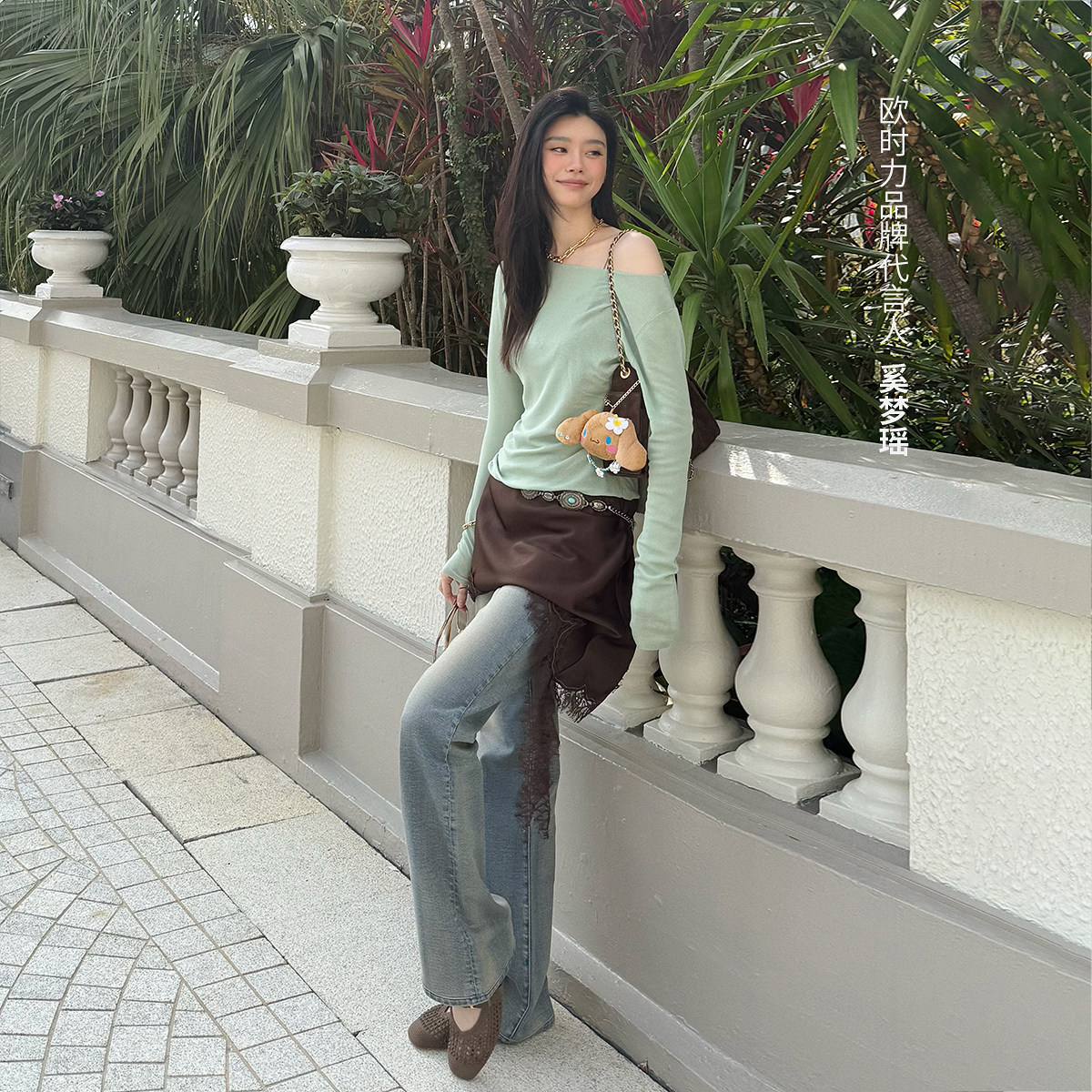 醋酸长绒棉一字领针织衫 欧时力 奚梦瑶同款 不对称2026春 新品