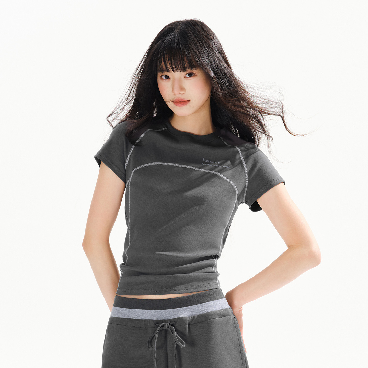 Brand女装 体恤上衣夏季 圆领运动修身 t恤女收腰显瘦短款 短袖 PSO