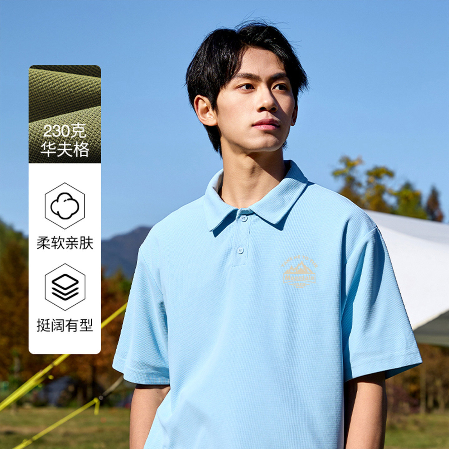 夏季 男款 重磅华夫格翻领体恤男生宽松休闲体恤LF polo衫 班尼路短袖
