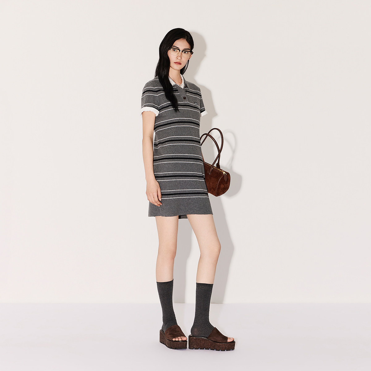 连衣裙2026春夏撞色条纹翻领休闲显瘦针织 OCHIRLY欧时力 新品