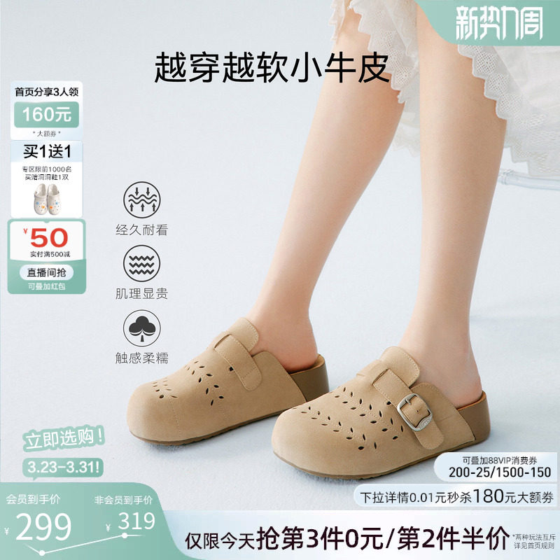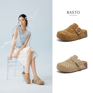 休闲外穿女包头半拖鞋 真皮厚底勃肯鞋 D5006BH6 新款 百思图2026夏季