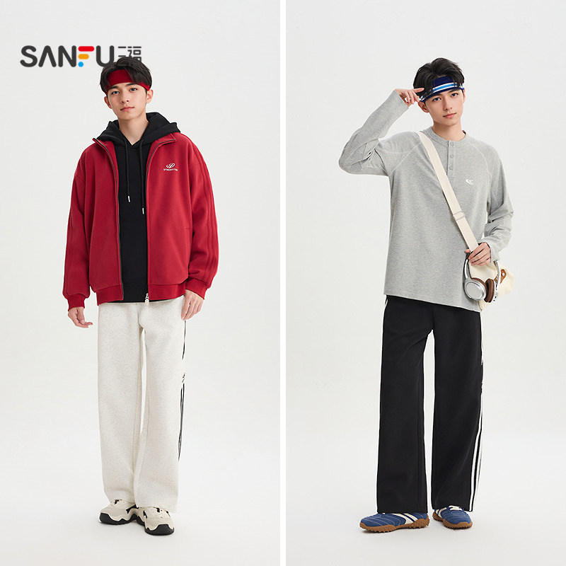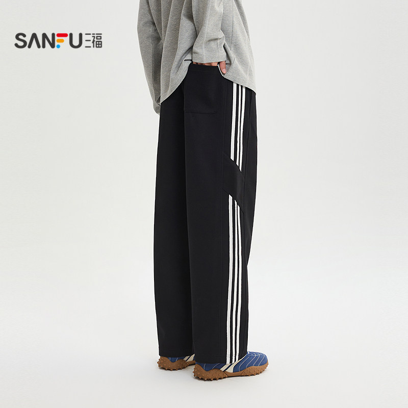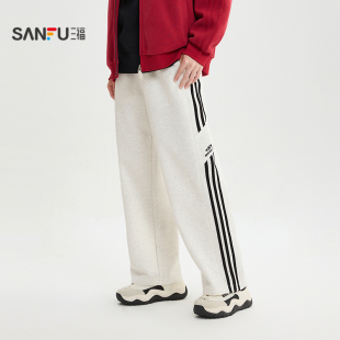 宽松大直筒抽绳长裤 运动风织带休闲裤 519072 男士 三福2026春季