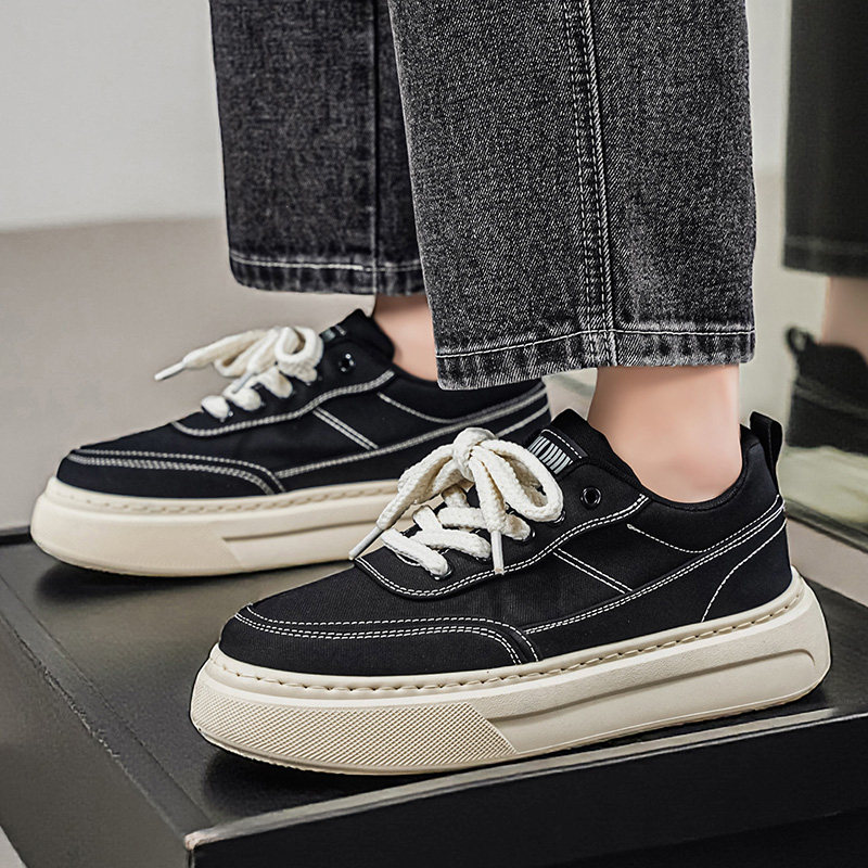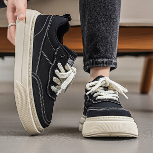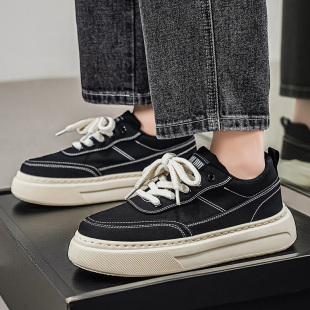 休闲复古厚底板鞋 春季 男士 帆布鞋 男鞋 子防滑工作上班潮鞋 2026新款