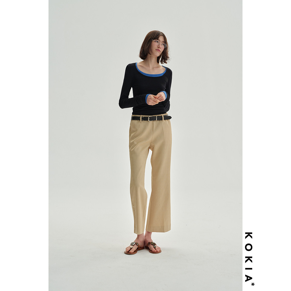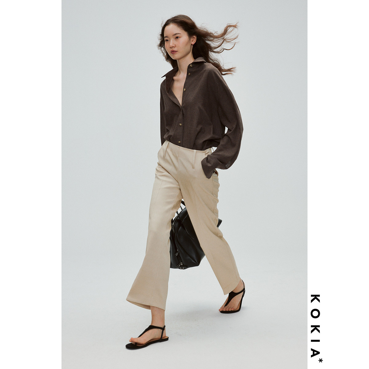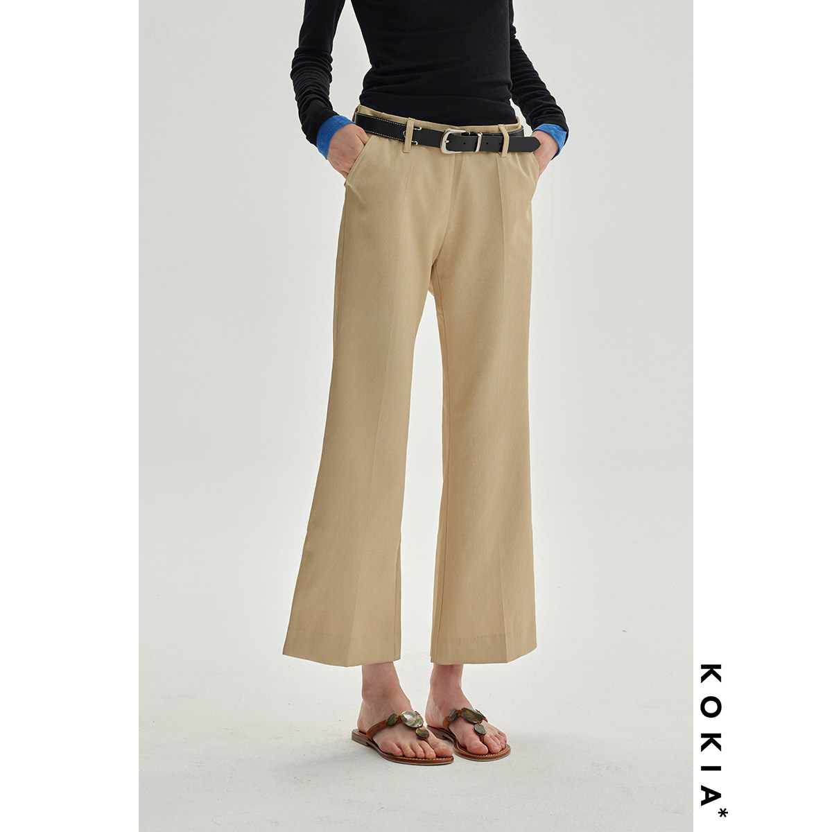 裤 KOKIA现货 低腰微喇九分西装 皱痕肌理缎面 轻奢垂感醋酸