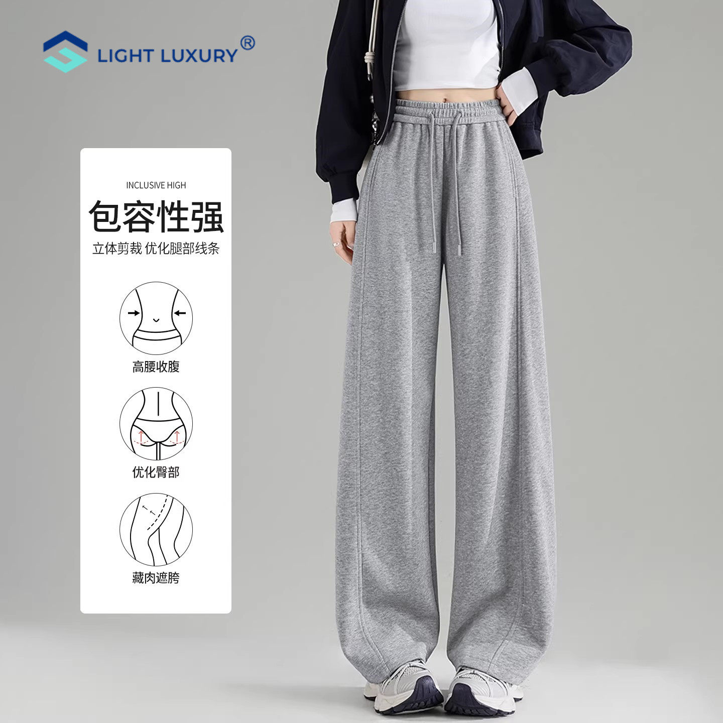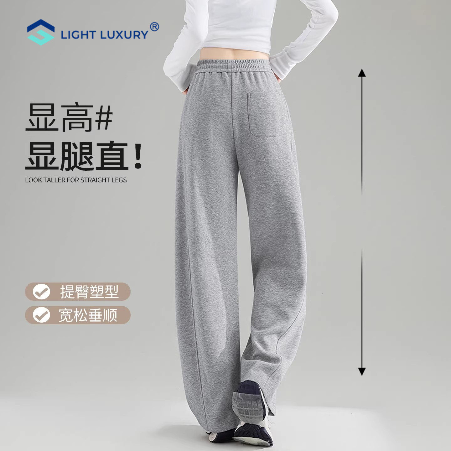 运动香蕉阔腿裤 灰色弯刀裤 高个子卫裤 休闲窄版 子 女2026新款