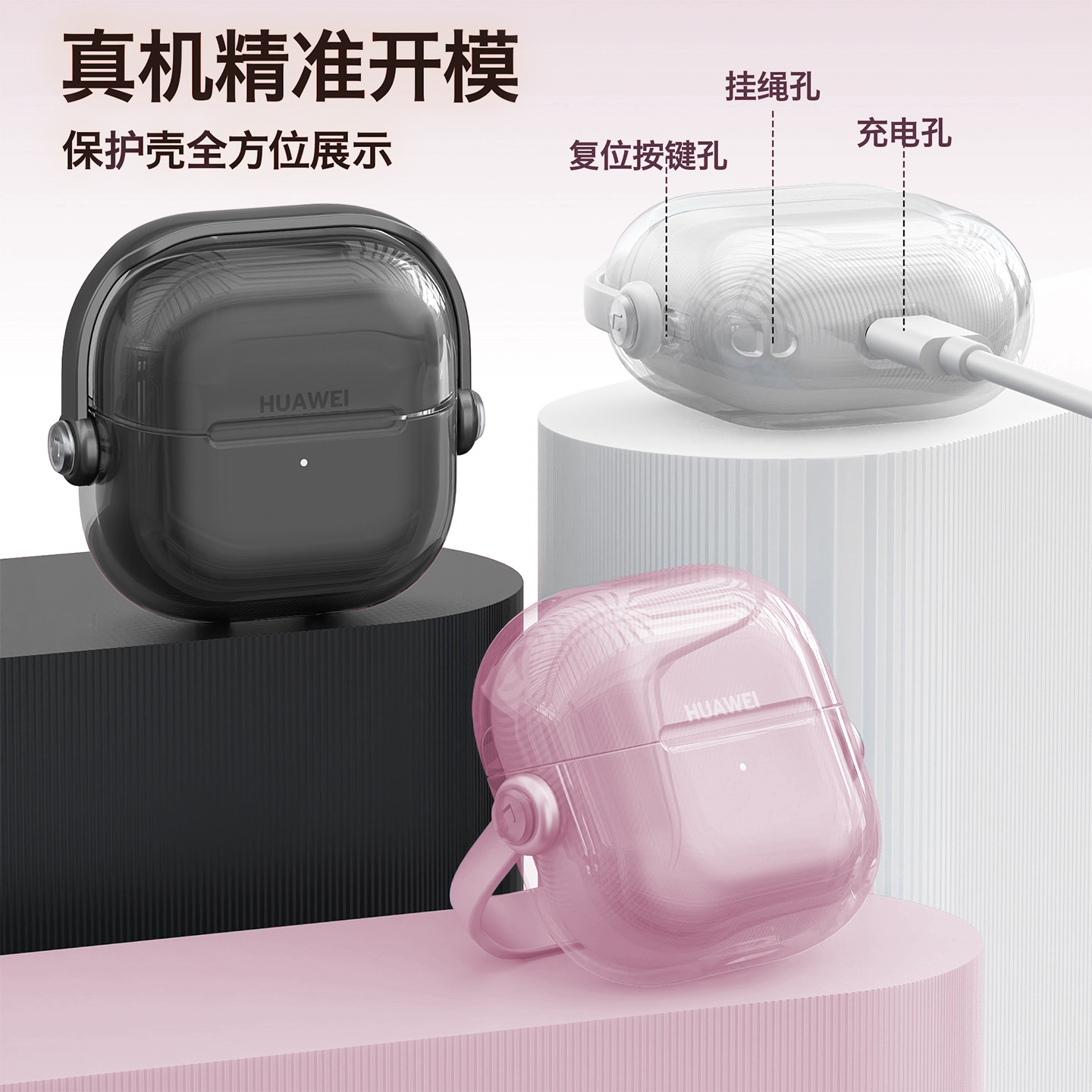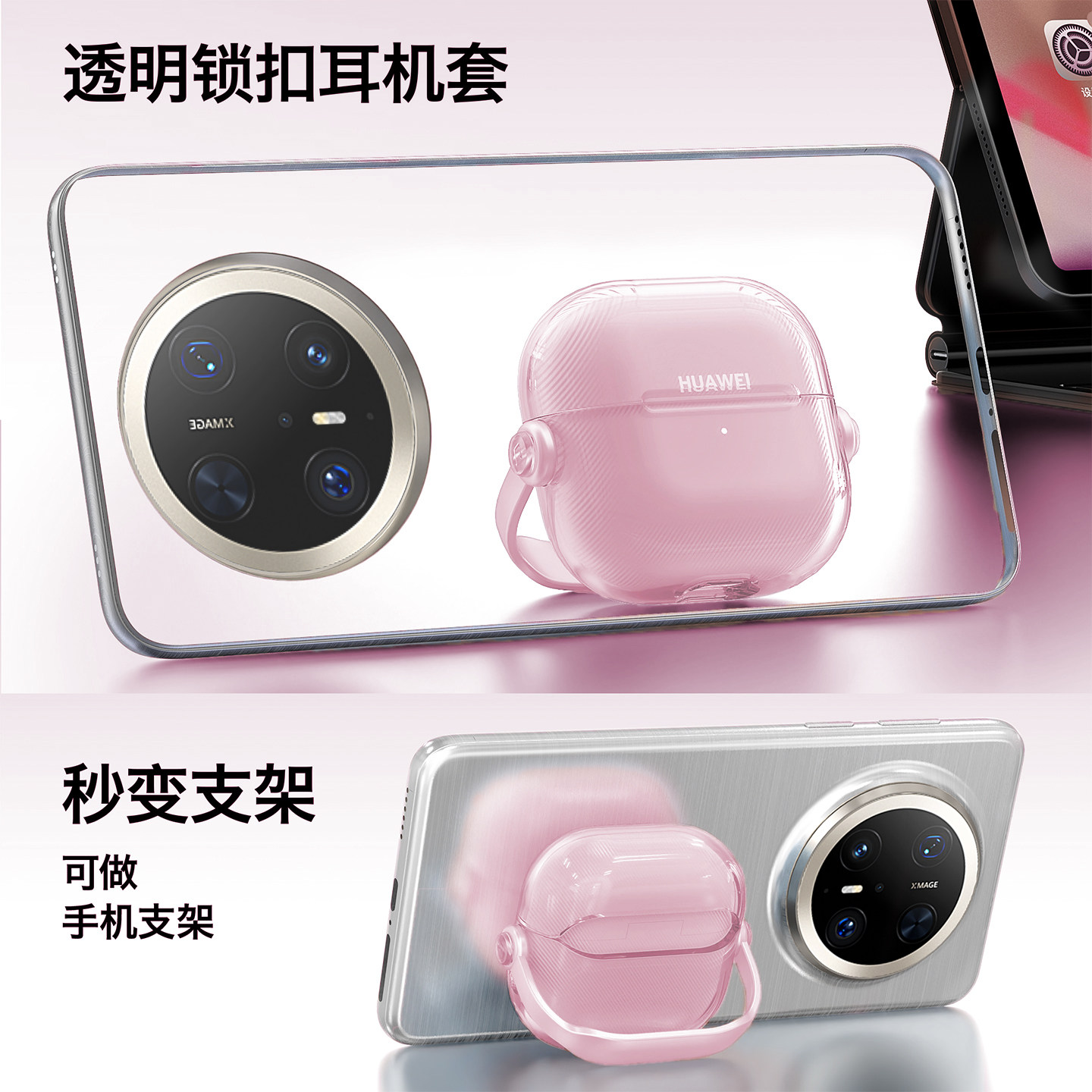 适用于华为freeclip2耳机保护壳freeclip2保护套freeclip二代外壳耳夹式 保护套创意开关透明原创软壳冰梅紫