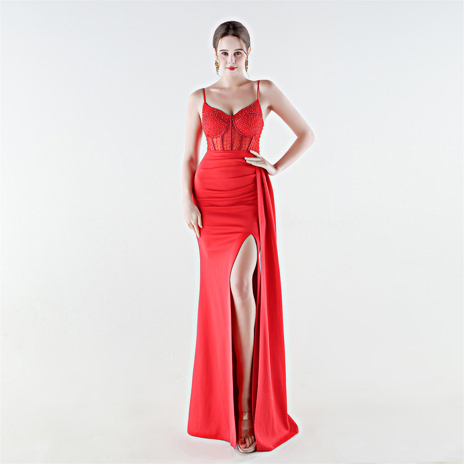 晚礼服裙女法式 吊带连衣裙 红色重工精致独特漂亮婚宴会高级感晚装