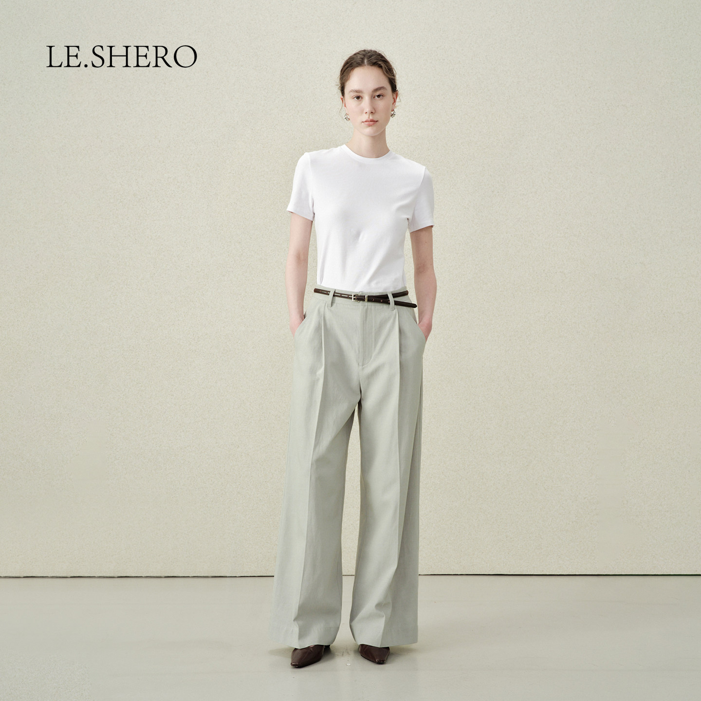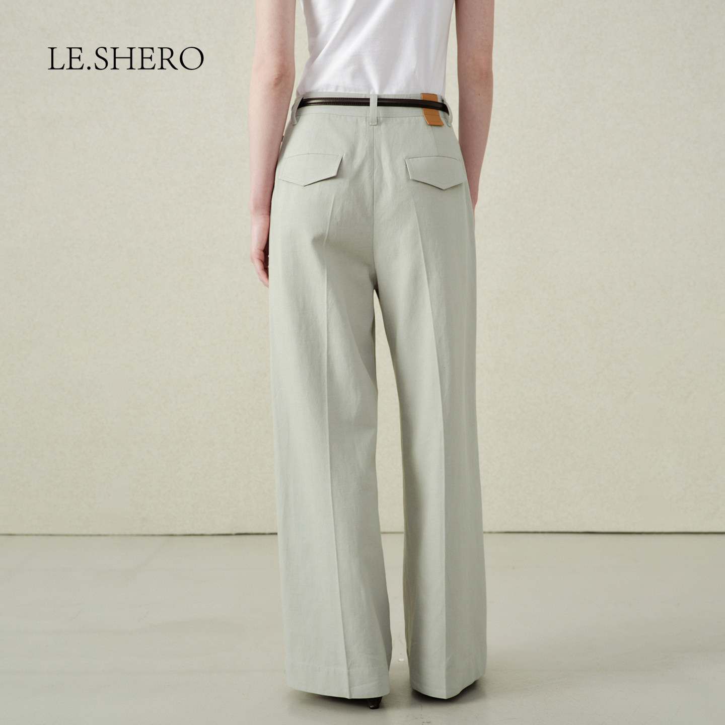 LE.SHERO原创设计基础百搭配腰带宽腿长裤 子 莱赛尔天丝直筒休闲裤