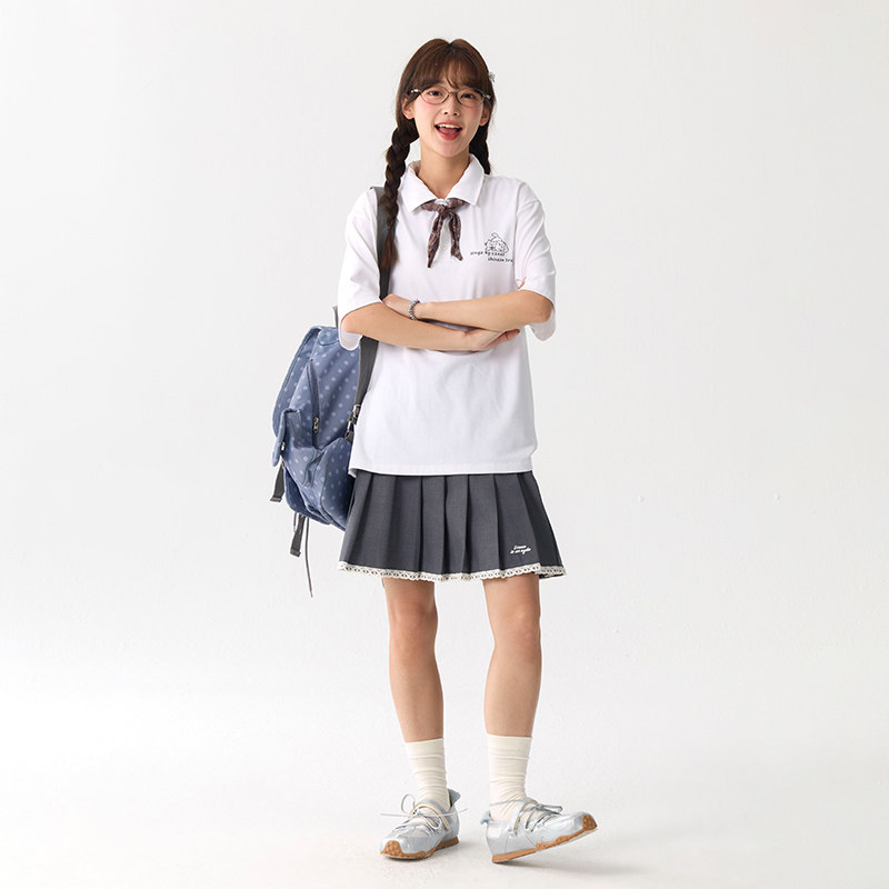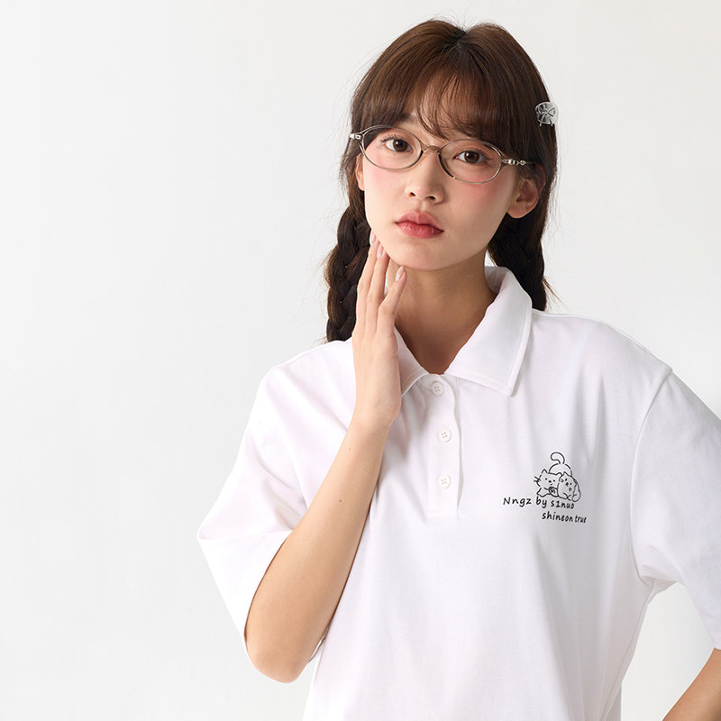 T恤女青少年学院风上衣 polo领短袖 诺诺公主S1N初中生2026夏季 新款