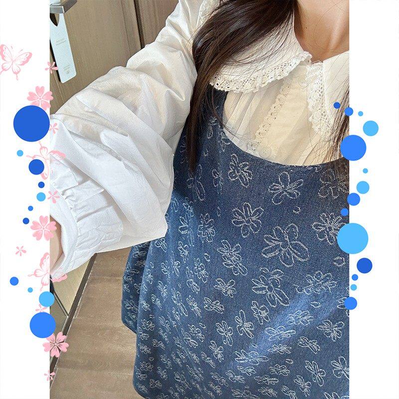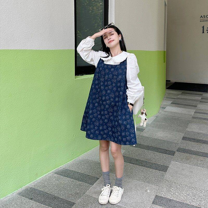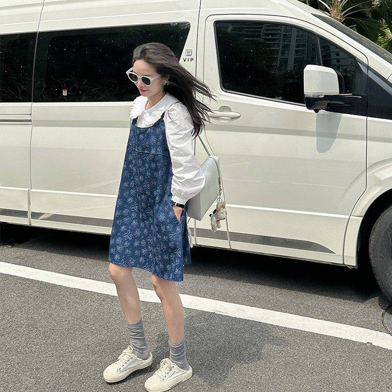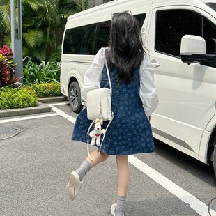 金苏一年中3折清仓 气质百搭小个子连衣裙 花朵牛仔背心裙春秋韩版