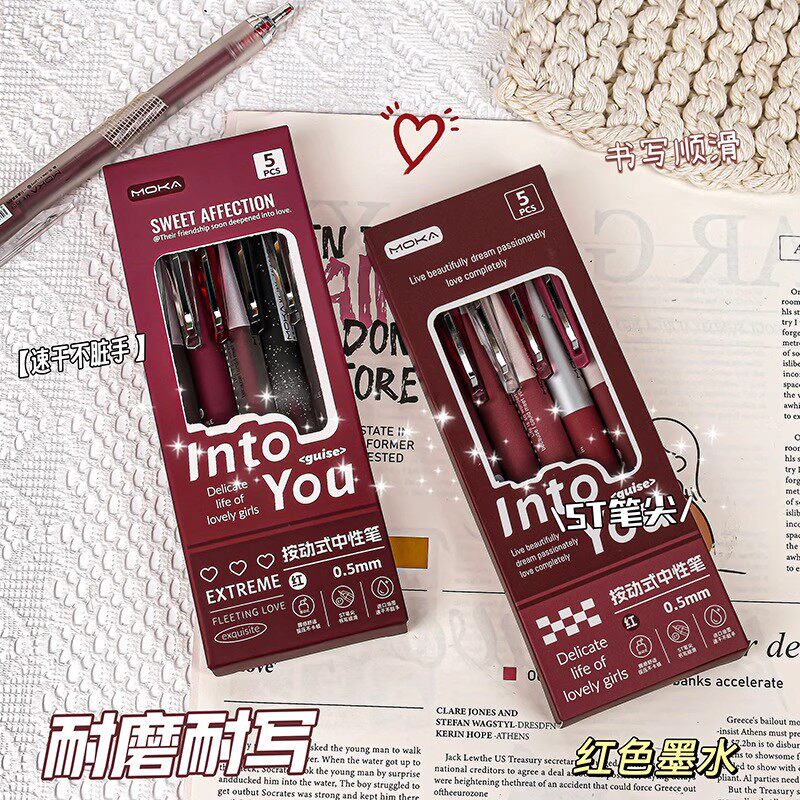 波尔多红笔红色中性笔学生老师专用批改作业划重点初高中生标记笔