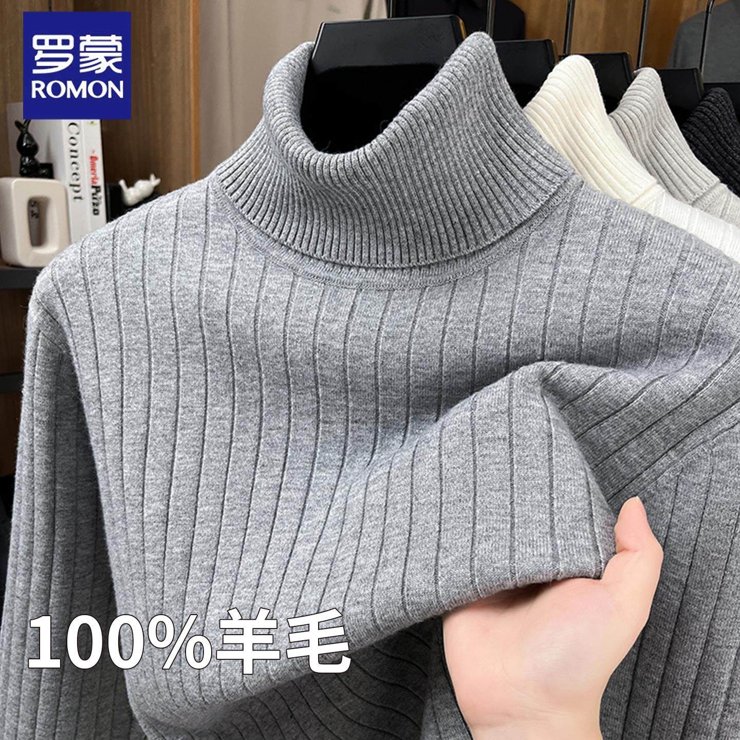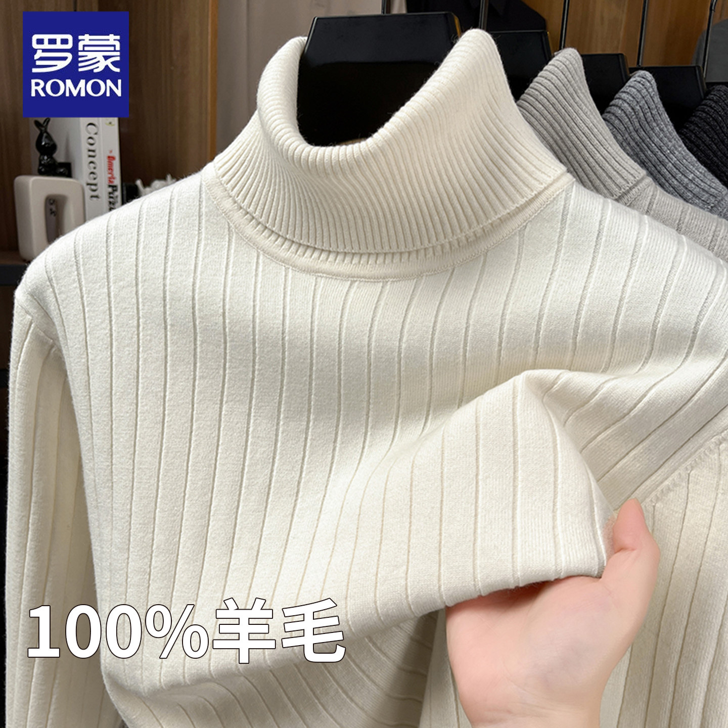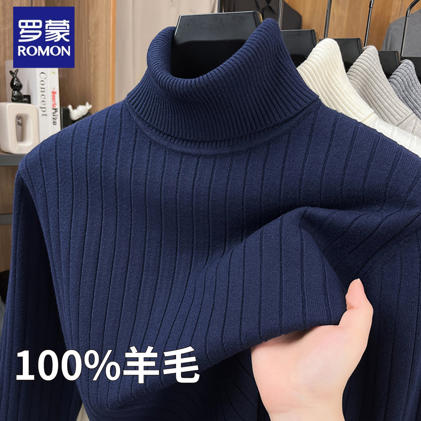 加厚保暖针织衫 罗蒙男士 冬季 套头可翻高领针织毛衣男士 100%羊毛衫