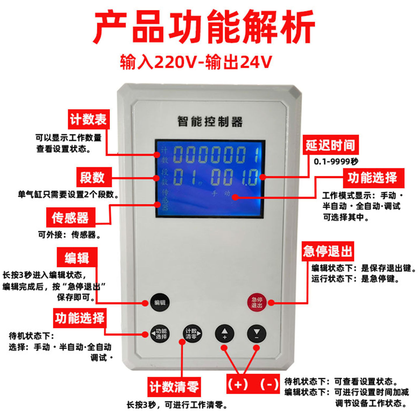 气缸增压缸气动智能控制器可编程自动化往复时间电磁阀控制开关