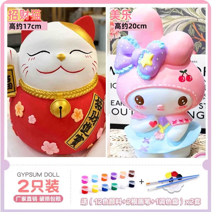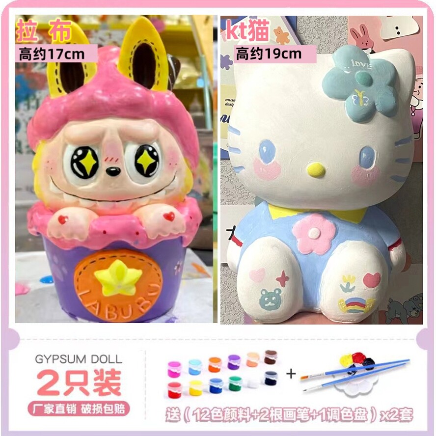 大号石膏娃娃库洛美乐米蒂涂色存钱罐儿童DIY白坯手工彩绘网红款