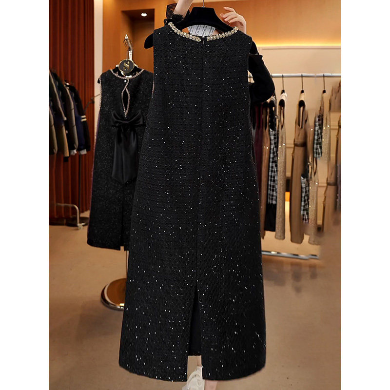 2024新款 黑色连衣裙子女秋冬季 小个子加绒长裙 赫本风掐腰长袖 法式