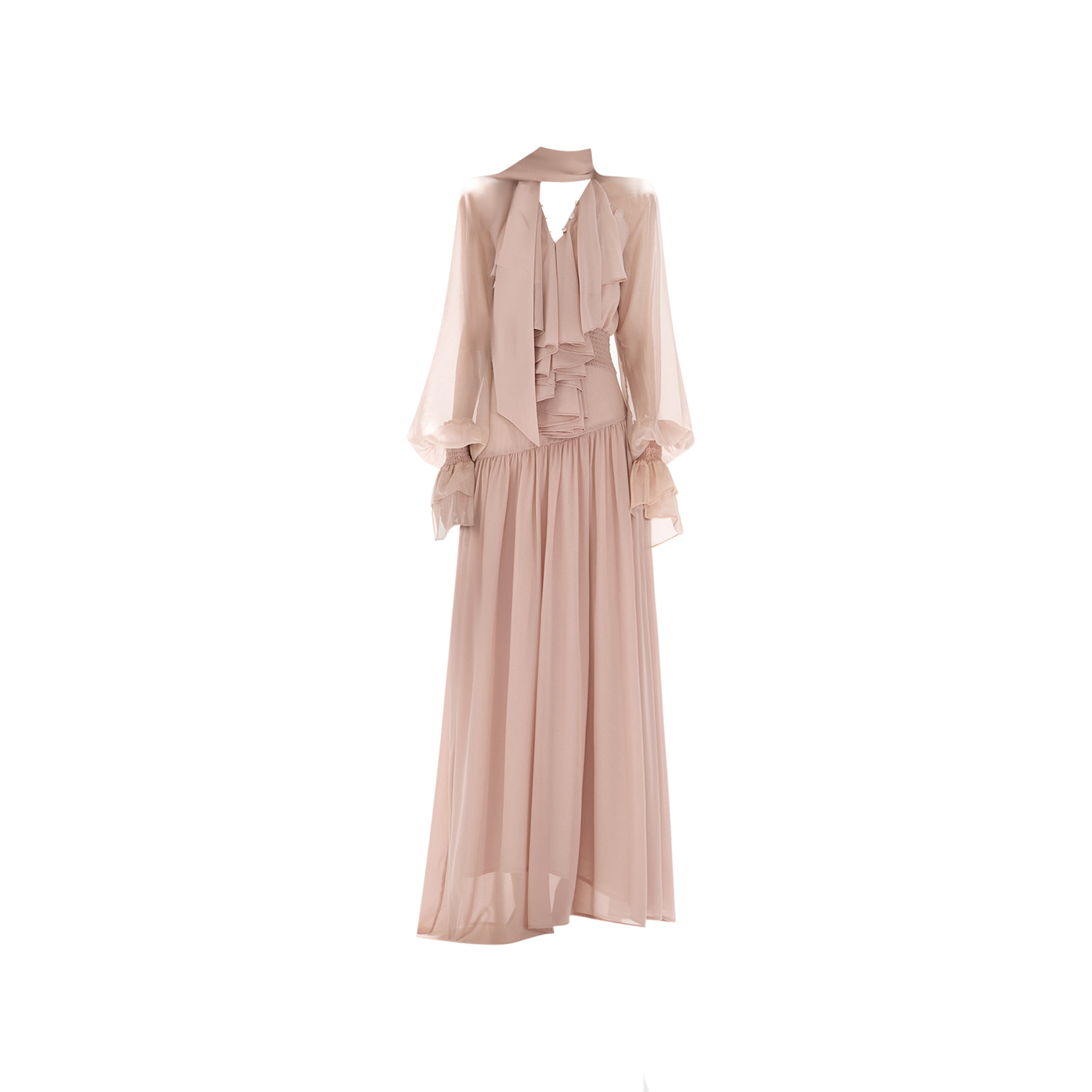 飘带连衣裙女秋冬2025打揽收腰垂感裙 宫廷风灯笼袖 GAOSITONG 法式