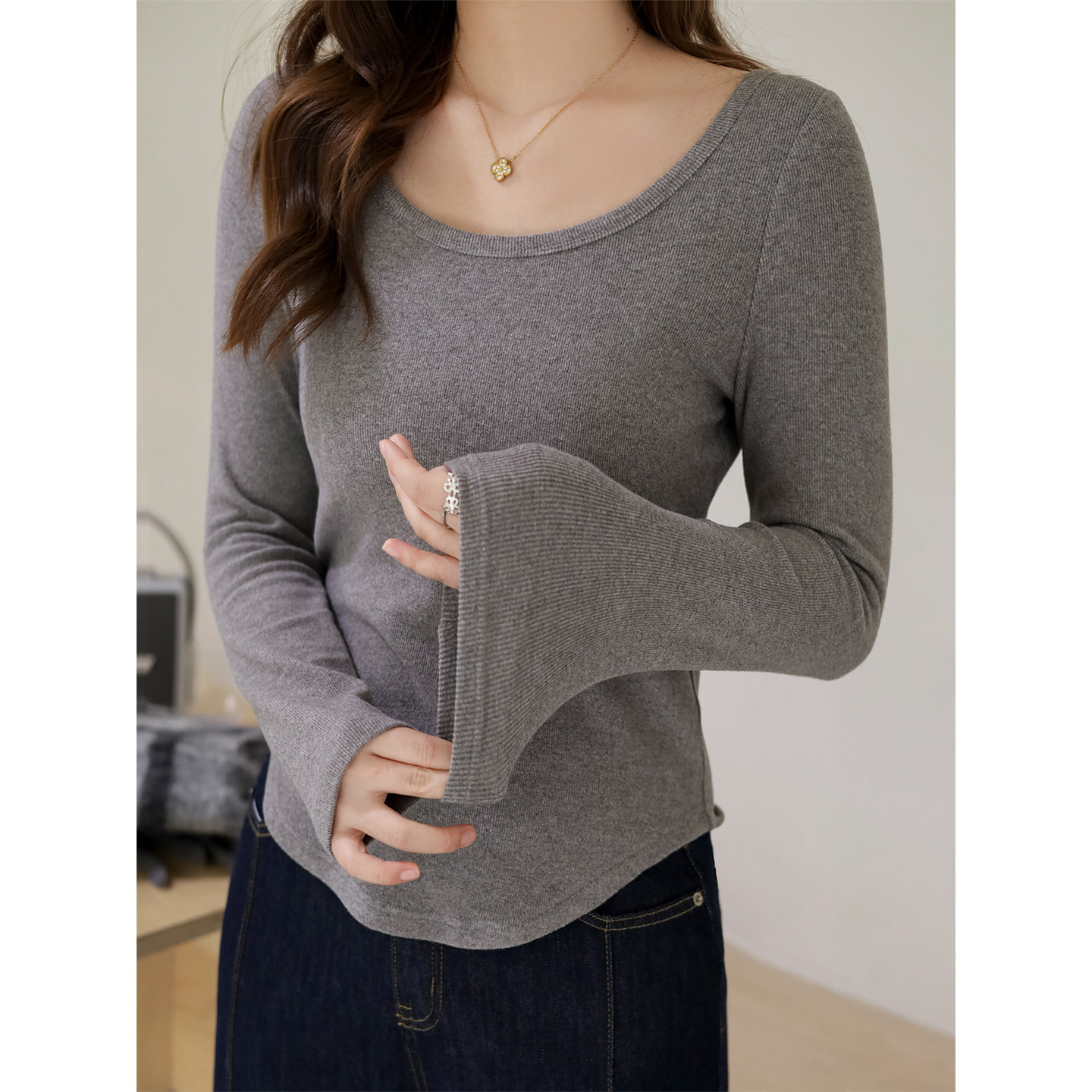 大圆领弧形正肩显瘦德绒T恤打底衫 微胖mm冬季 百分百女装 DM100大码