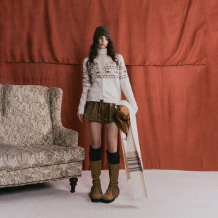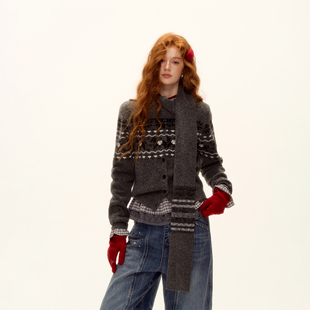 针织围巾 费尔岛提花圆领针织开衫 AsGony 25AW新款
