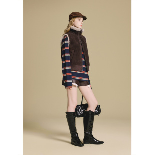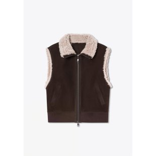 PSALTER诗篇麂皮真箱型无袖 立领马甲皮草外套2025冬款