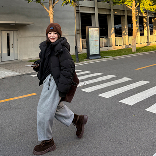 宽松垂感梨形身材显瘦直筒裤 加绒胖mm大码 子 女冬季 灰色糯米休闲裤