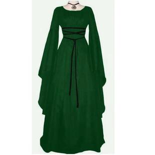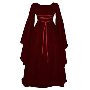 Belt Dress Costume Irregular Long Round Neck Womens Sleeve