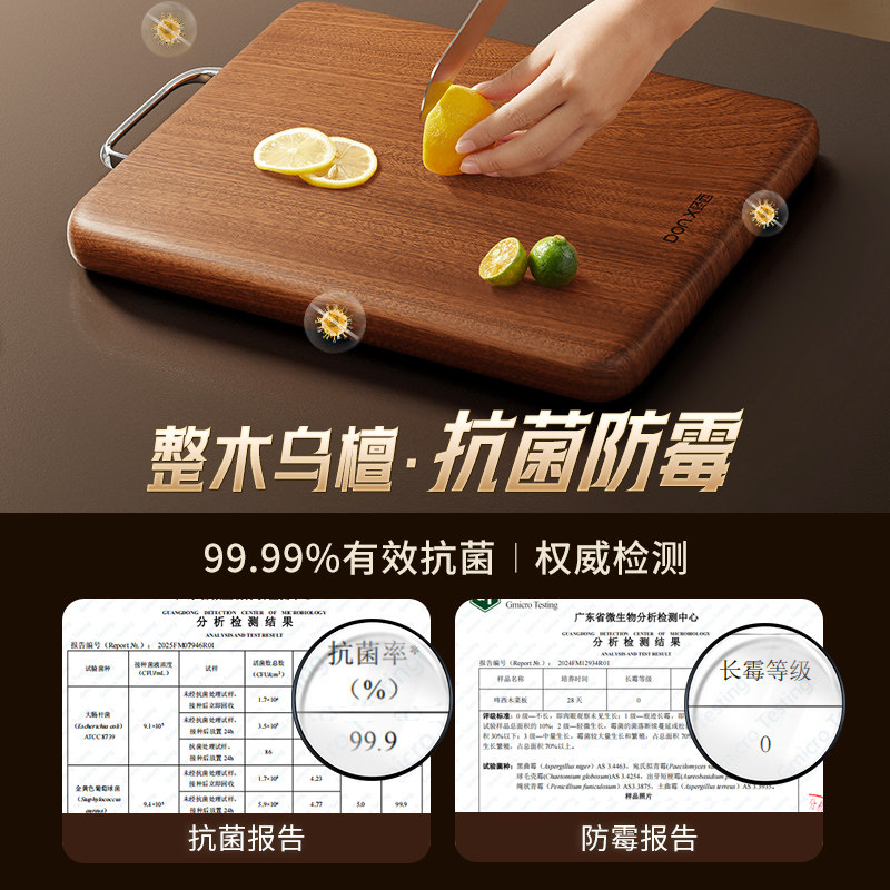 乌檀木整木砧板抗菌防霉家用水果辅食双面小案板食品级实木切菜板
