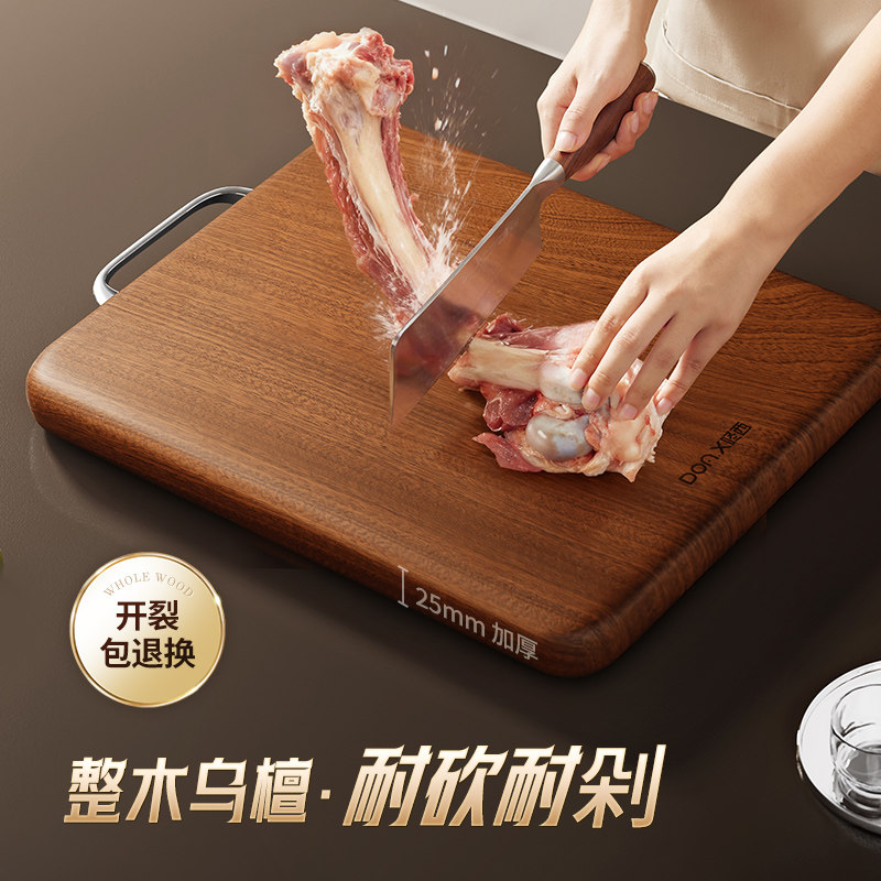 好管家乌檀木菜板抗菌防霉家用砧板占粘防裂黑金檀实木案板切菜板