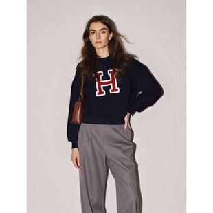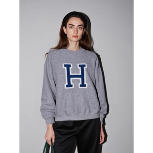 字母印花宽松外套 百家好藏青色圆领卫衣女士2026春季 Basic House