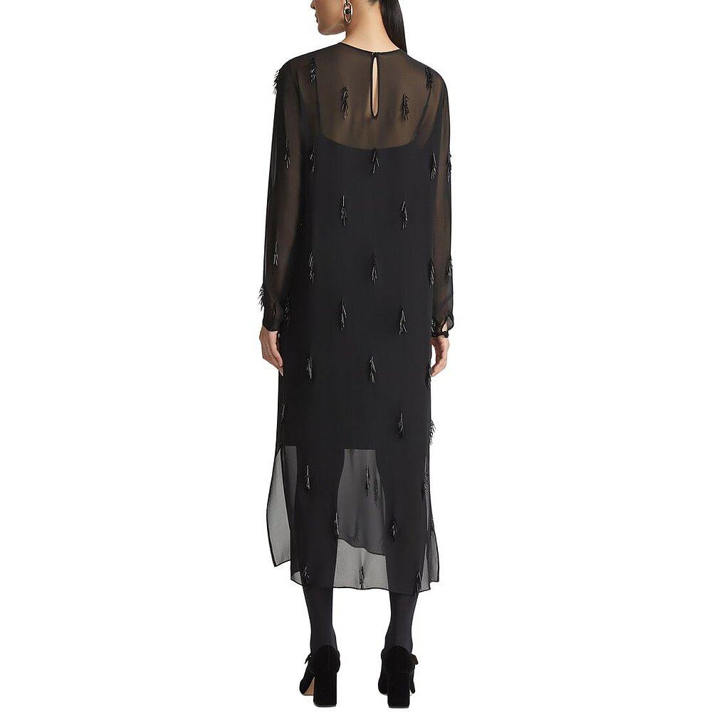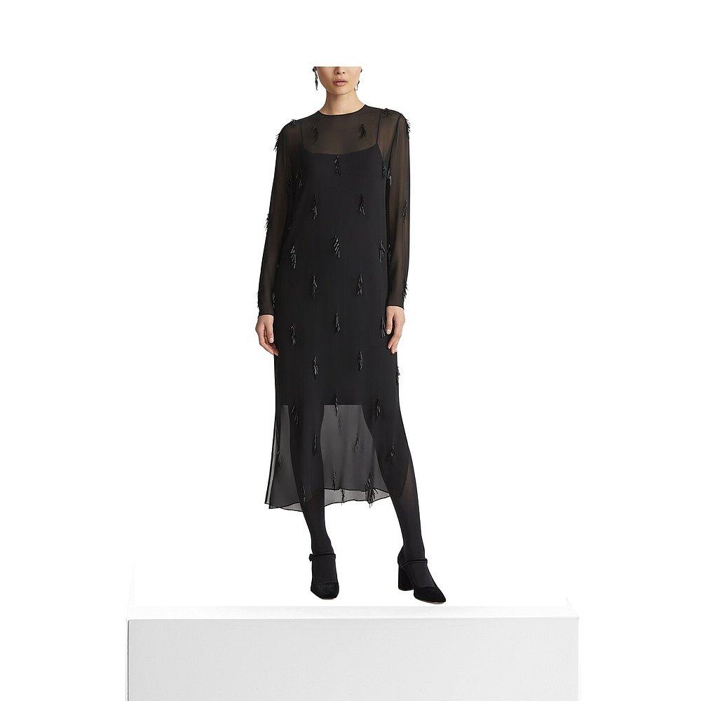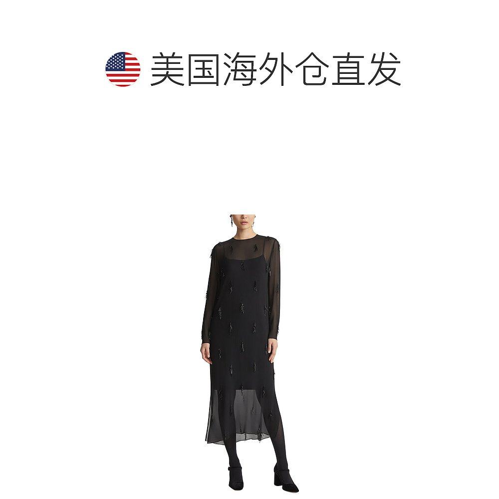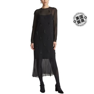 V领遮肚显瘦中长裙 洋气喇叭袖 时尚 重工烫钻连衣裙女2025春秋新款