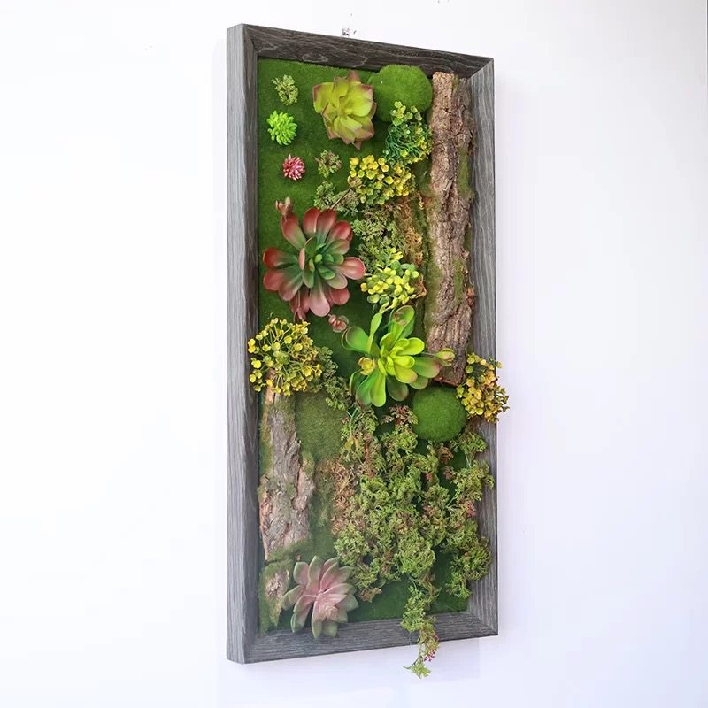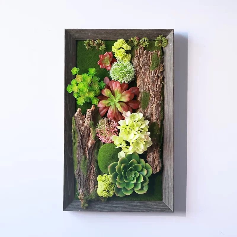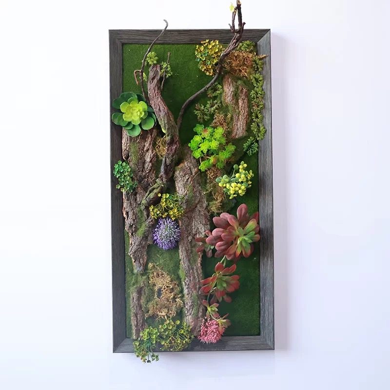 仿真绿植多肉壁挂田园挂饰壁饰相框北欧立体植物树皮墙面装 饰