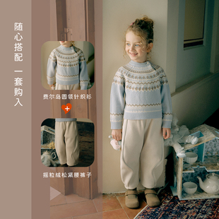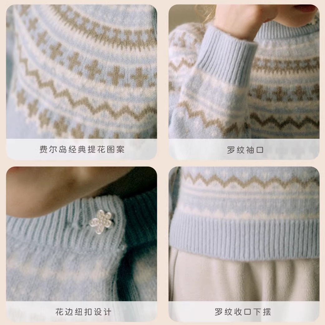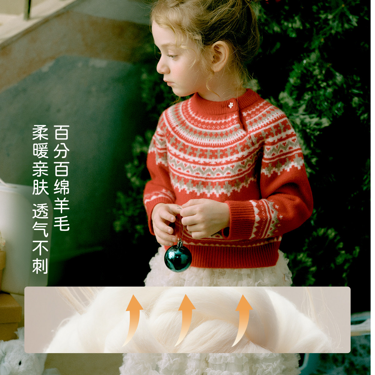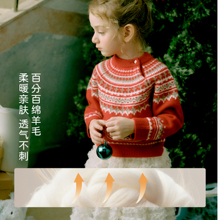 上衣 费尔岛秋冬100%纯羊毛套头毛衣女童针织衫 SEQB小象Q比