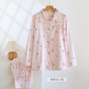 2025新款 撞色卡通睡衣女春秋冬季 全棉家居服套装 长袖 纯棉磨毛大码