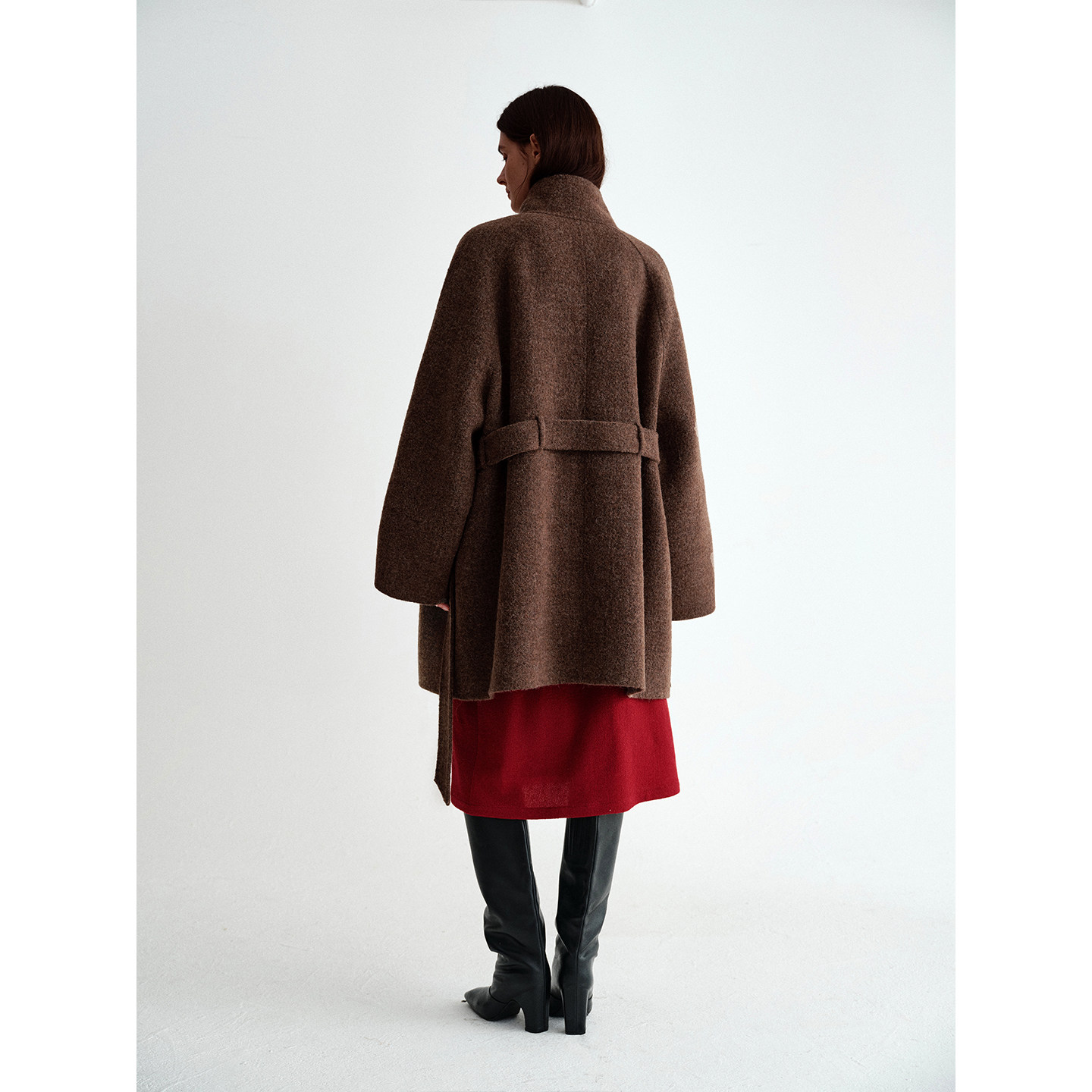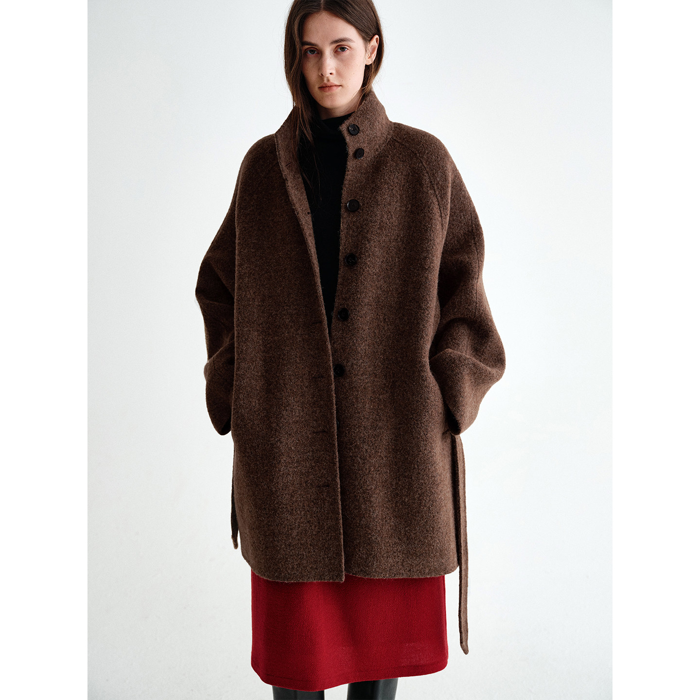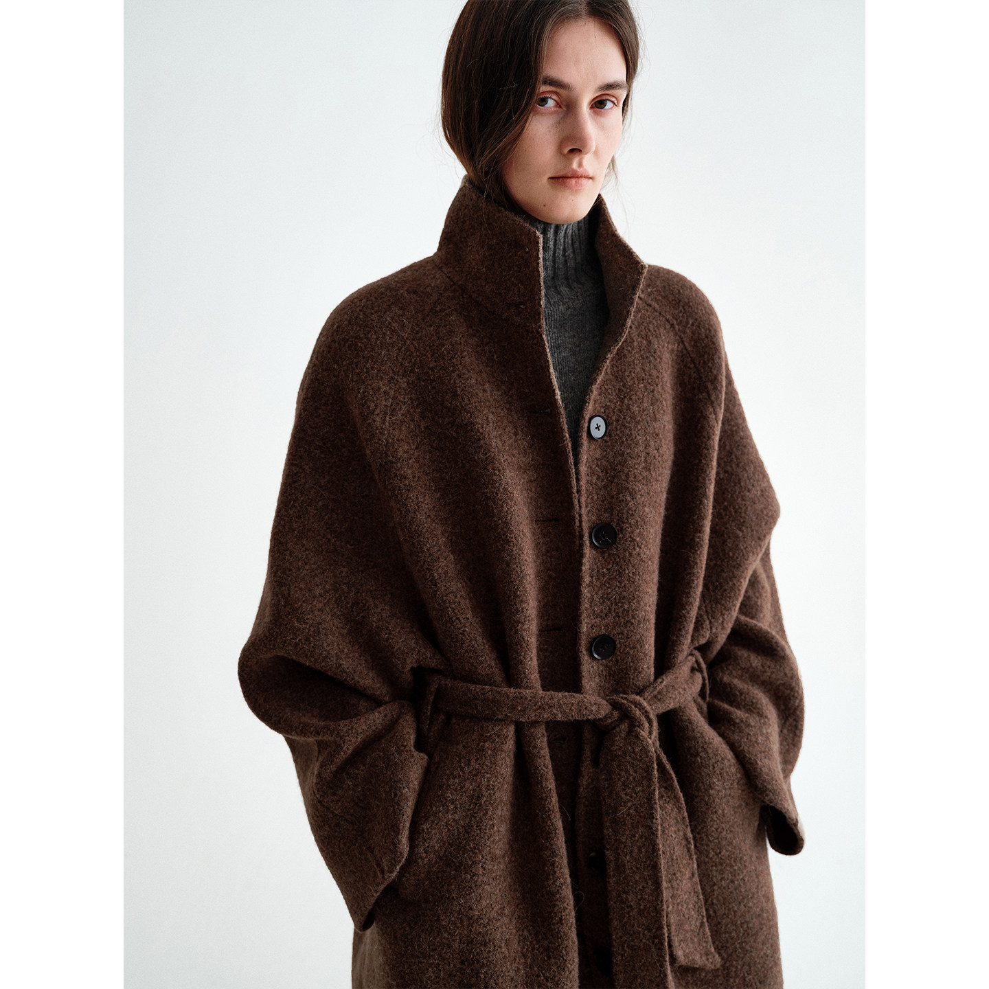 PLANITES 腰带双面呢大衣外套 颗粒绒软塑型全羊毛双面呢