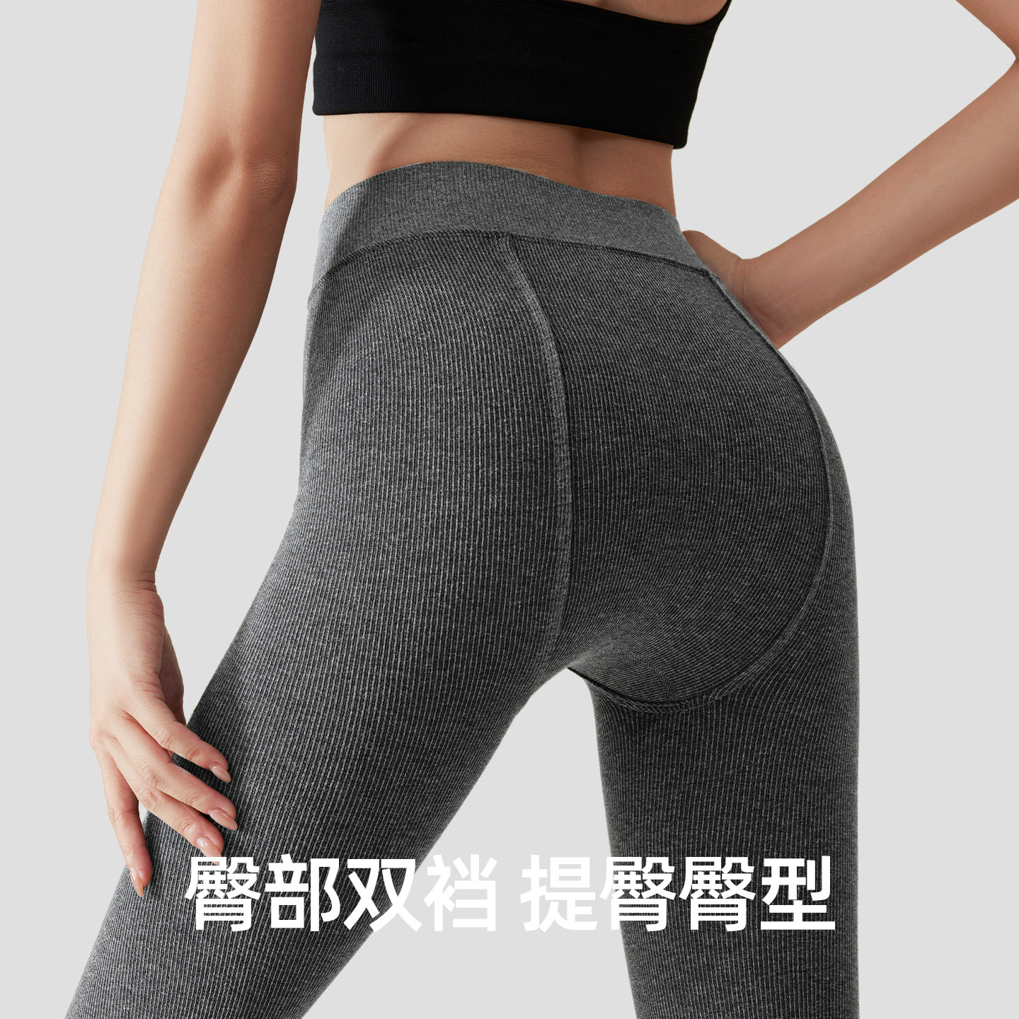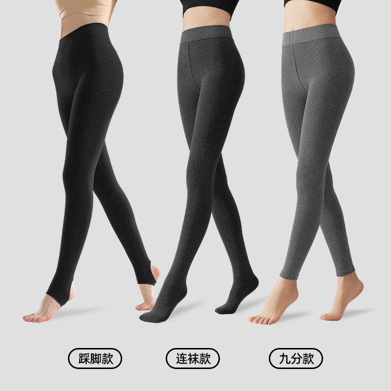 袜加绒加厚九分裤 连裤 冬外穿女微压显瘦2025新款 竖条纹灰色打底裤