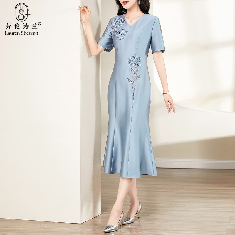 喜妈妈高端礼服轻奢优雅气质鱼尾裙显瘦修身 婚宴宴会连衣裙小个子