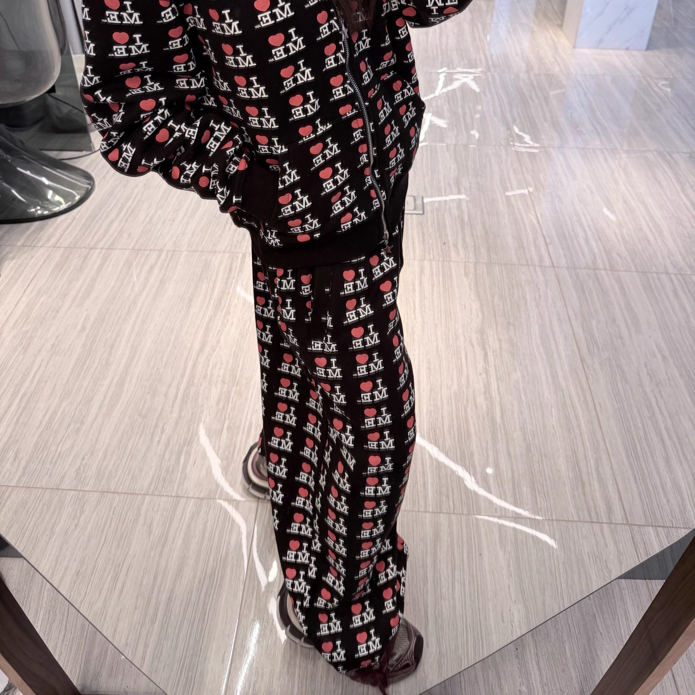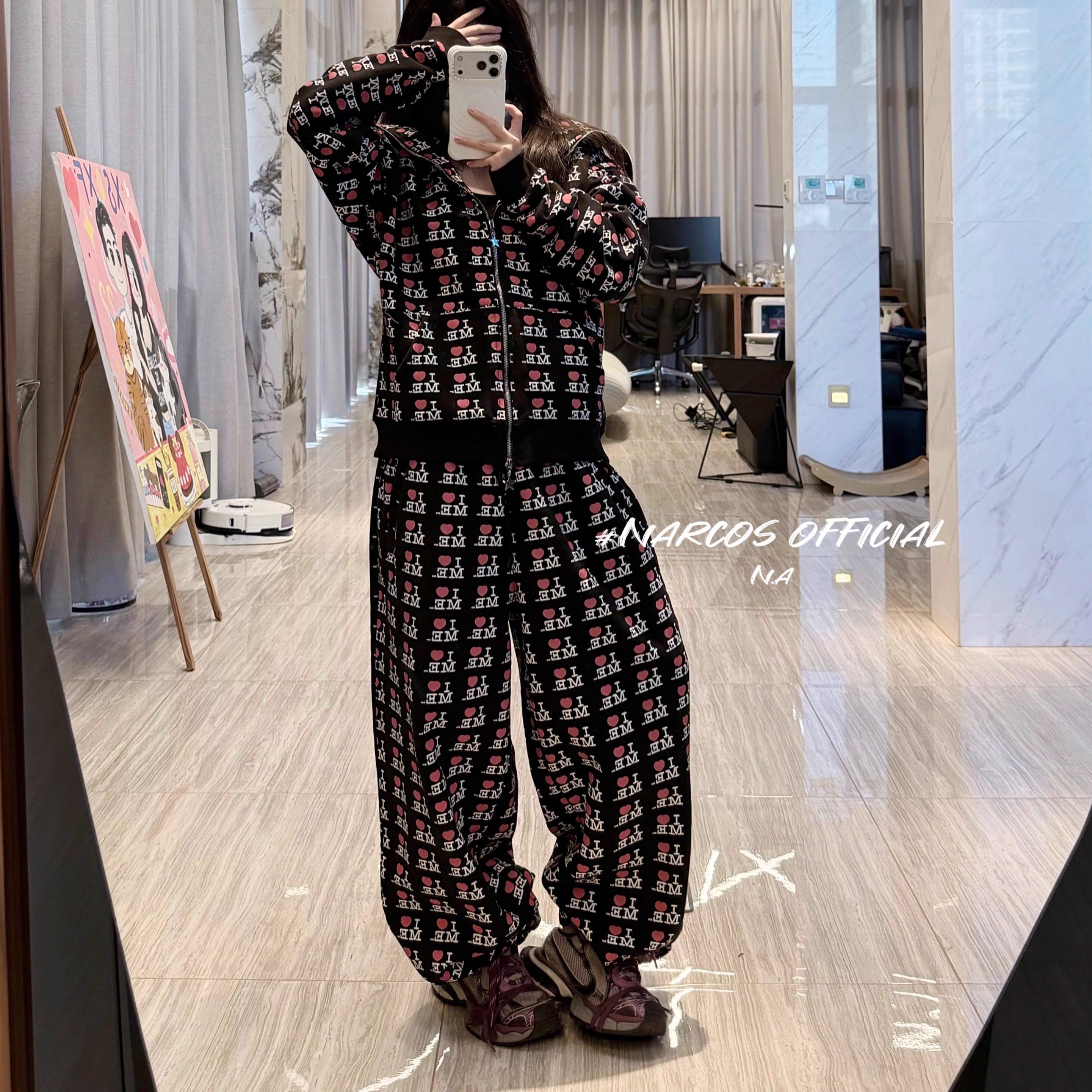 宽松黑色休闲裤 加绒卫裤 子女秋冬运动裤 灰色弯刀裤 长裤 oneup美式