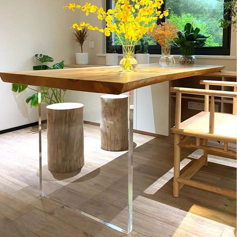 50mm 高透明亚克力桌腿定制厚板抛光加工T型餐桌茶几桌脚20