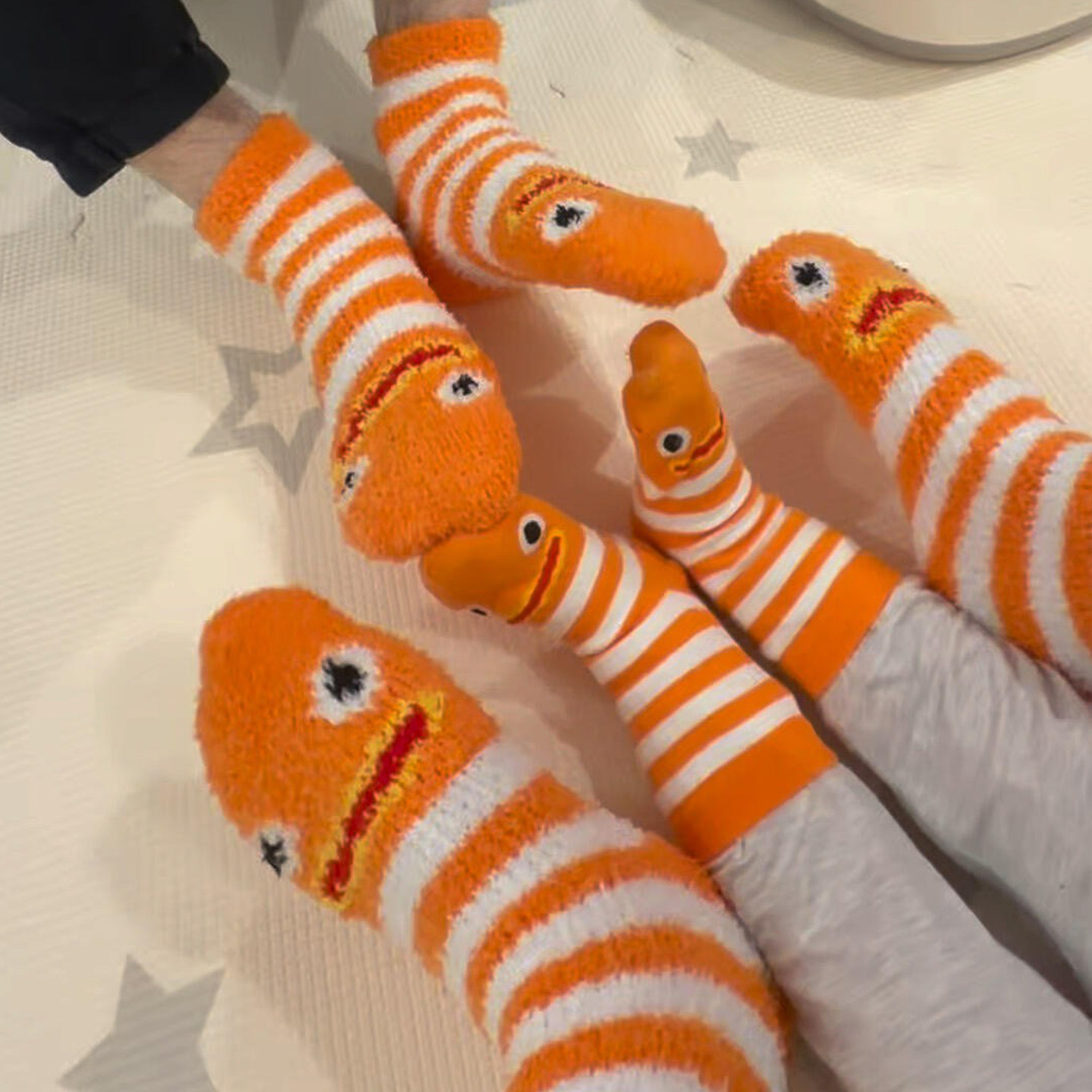 毛绒袜子珊瑚绒花园鳗鱼亲子儿童搞怪地板长袜月子袜女纯棉冬加厚
