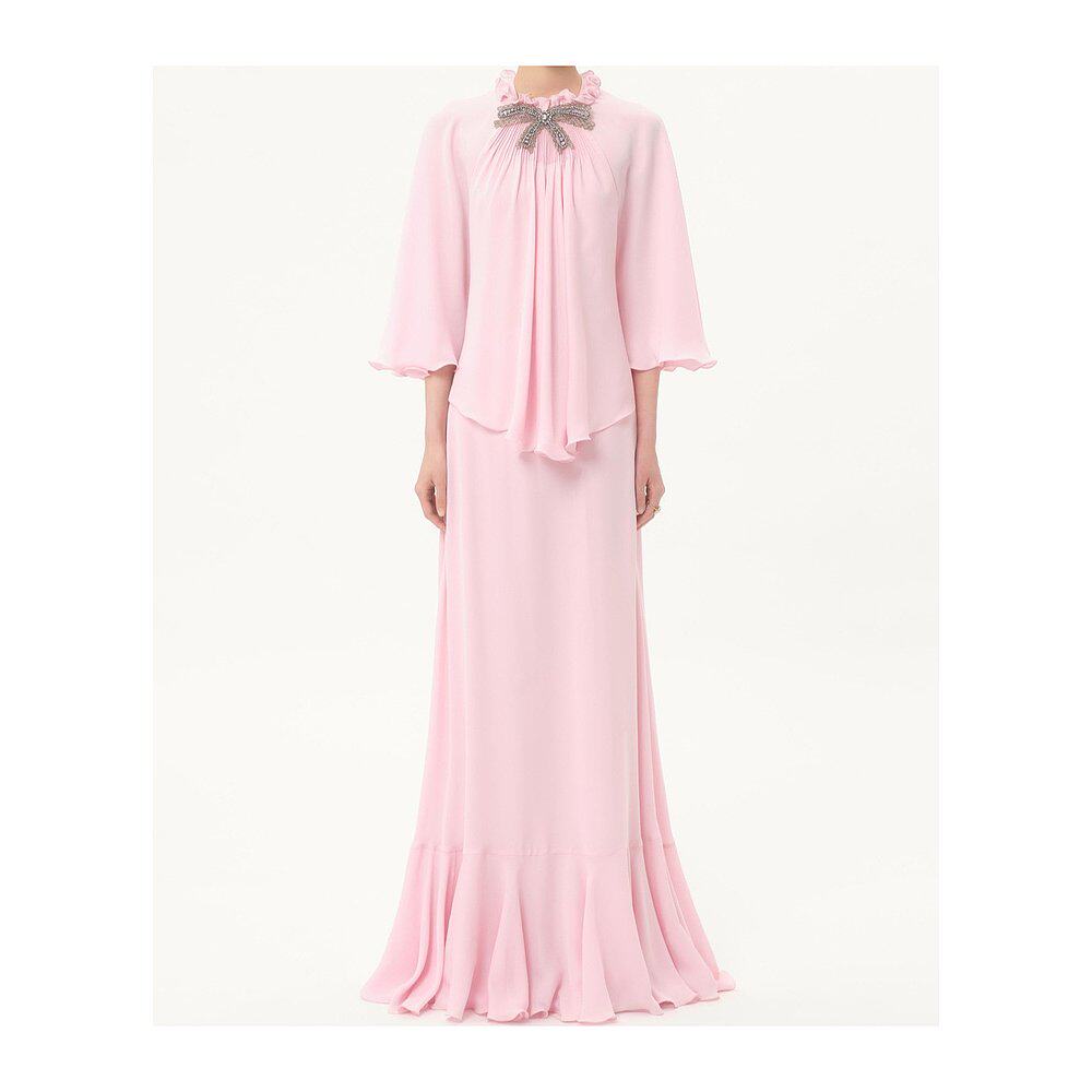 香港直邮Valentino BVDLM11MH真丝长裙 蝴蝶结连衣裙