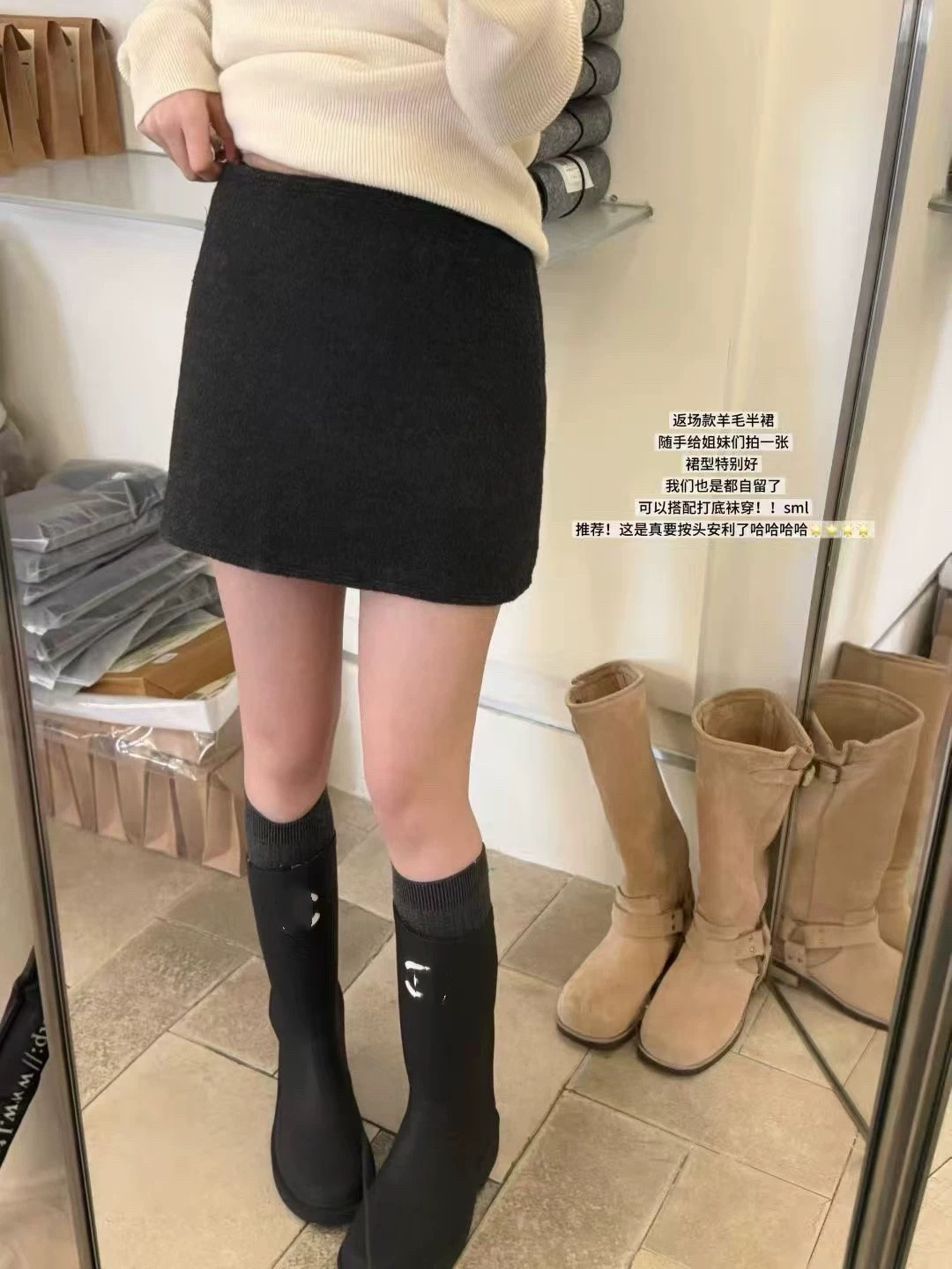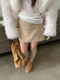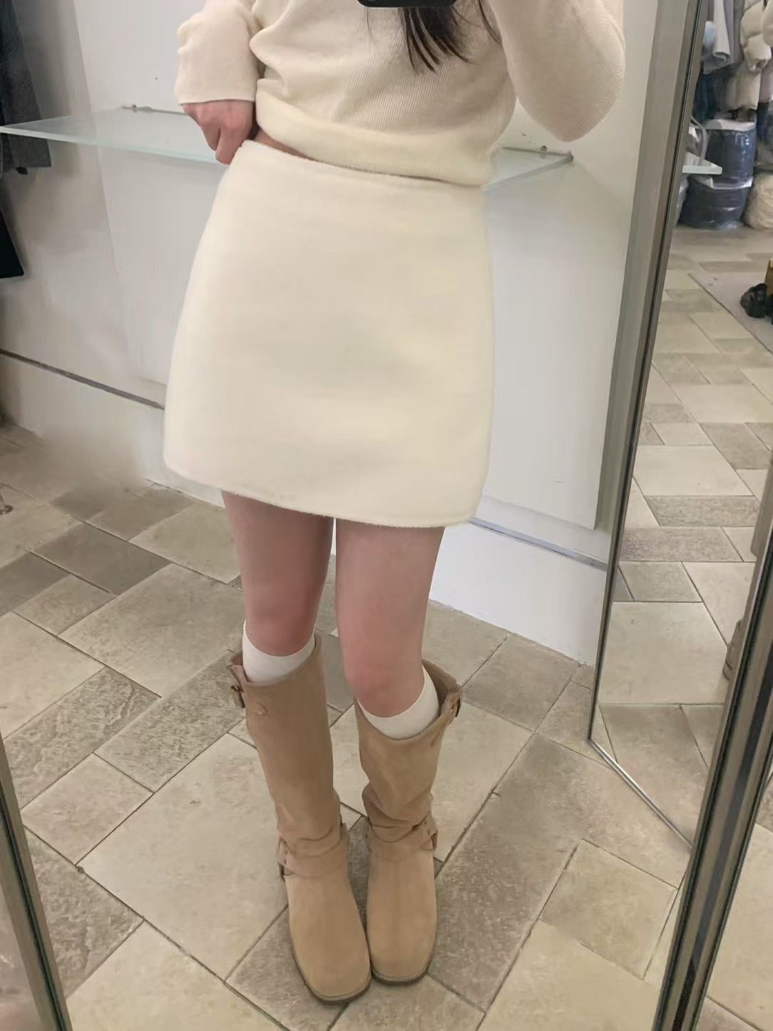 AME2025新款 冬高品质双面羊毛高腰显瘦加厚毛呢半身裙A字裙 韩版