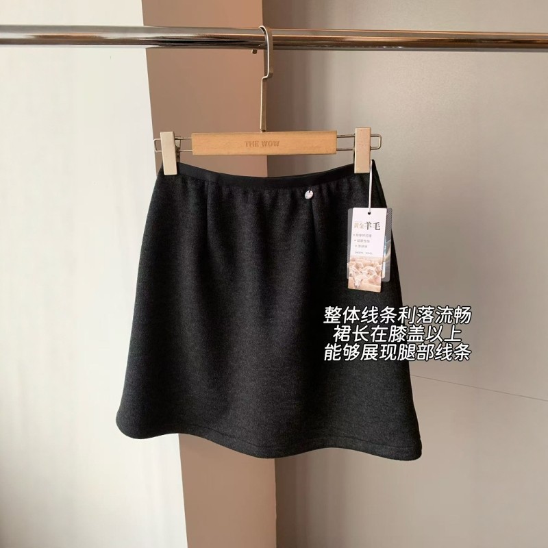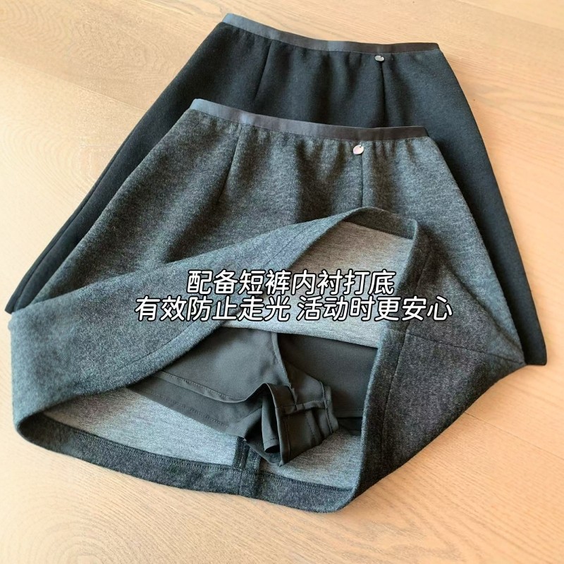 灰色毛呢半身裙女2025秋冬款 高腰显瘦A字短裙宽松小个子包臀裙子