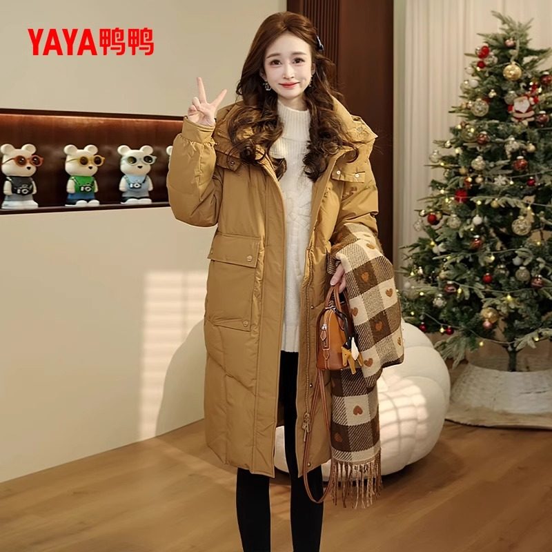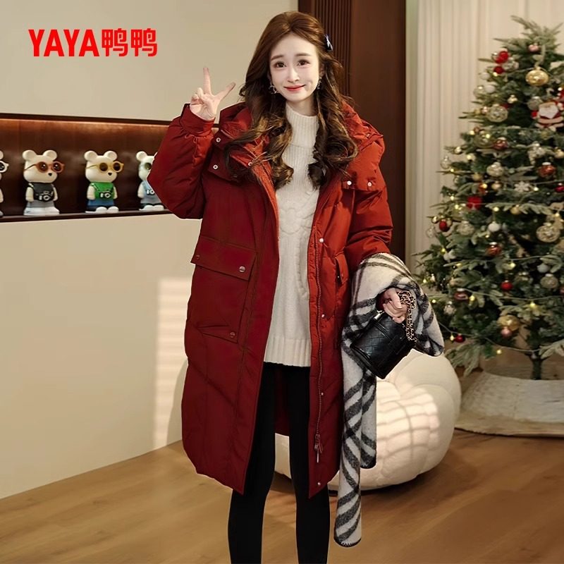 时尚 新款 休闲纯色保暖外套XH 连帽羽绒服2024年冬季 鸭鸭女士中长款