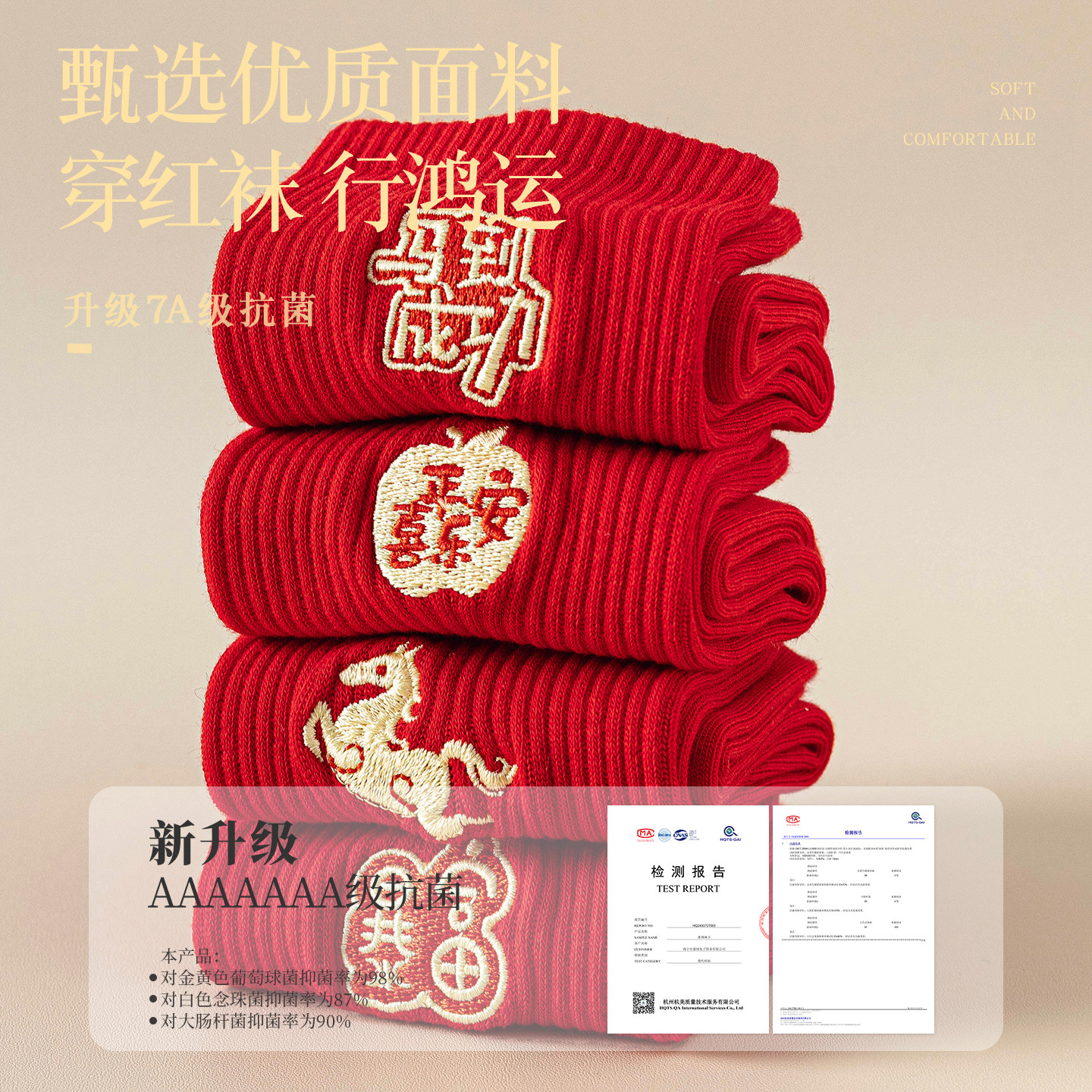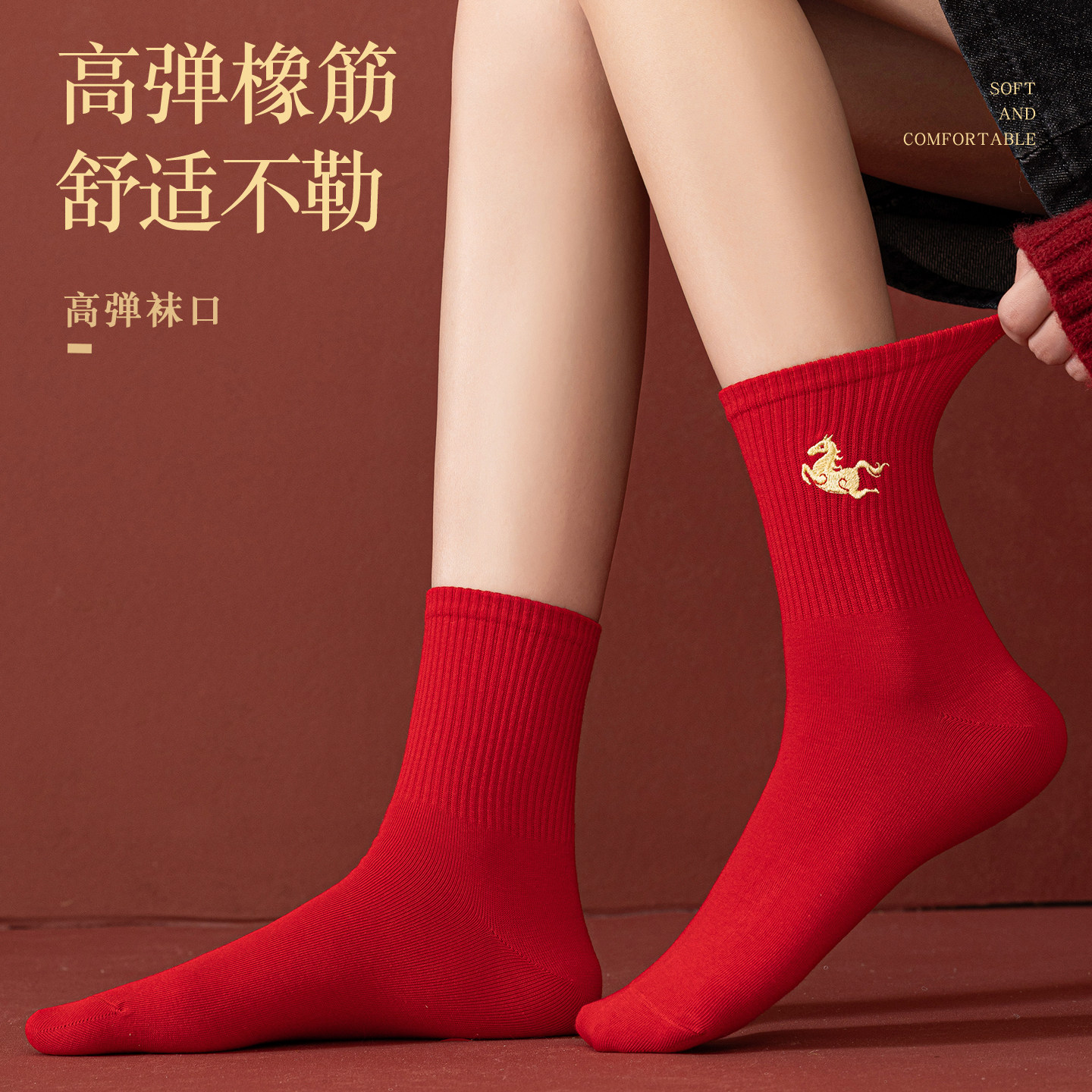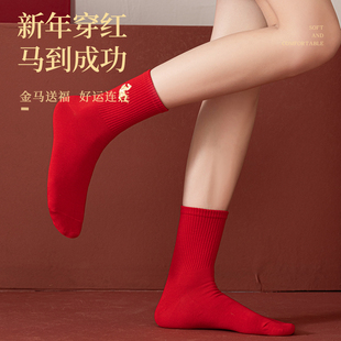 2026马年本命年袜子秋冬季 女士情侣一对中筒礼物新年红色防臭棉袜