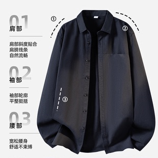 男春秋季 男装 新款 胖子加肥加大大码 上衣外套 纯棉衬衣男士 黑色衬衫