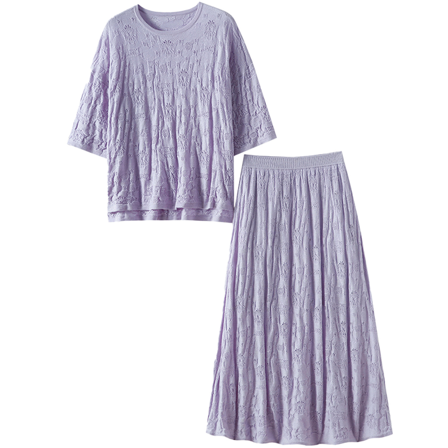 毛衣半身伞裙子套装 奢 女中袖 高定精纺100%纯山羊绒衫 花园伊梦