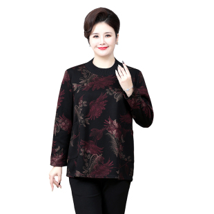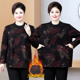 女 小衫 100 230斤加绒加厚胖妈妈宽松圆领卫衣加肥加大中老年厚款